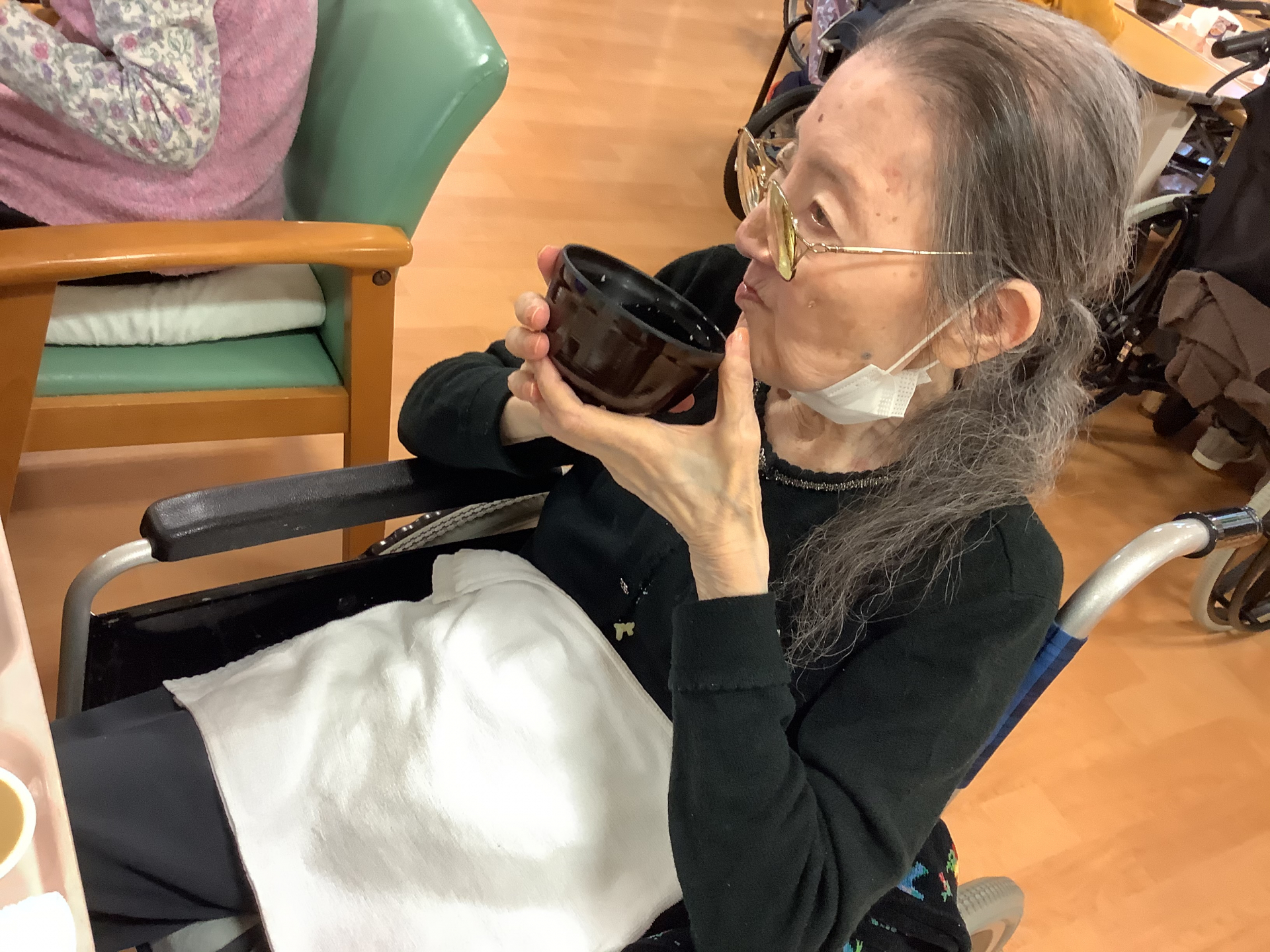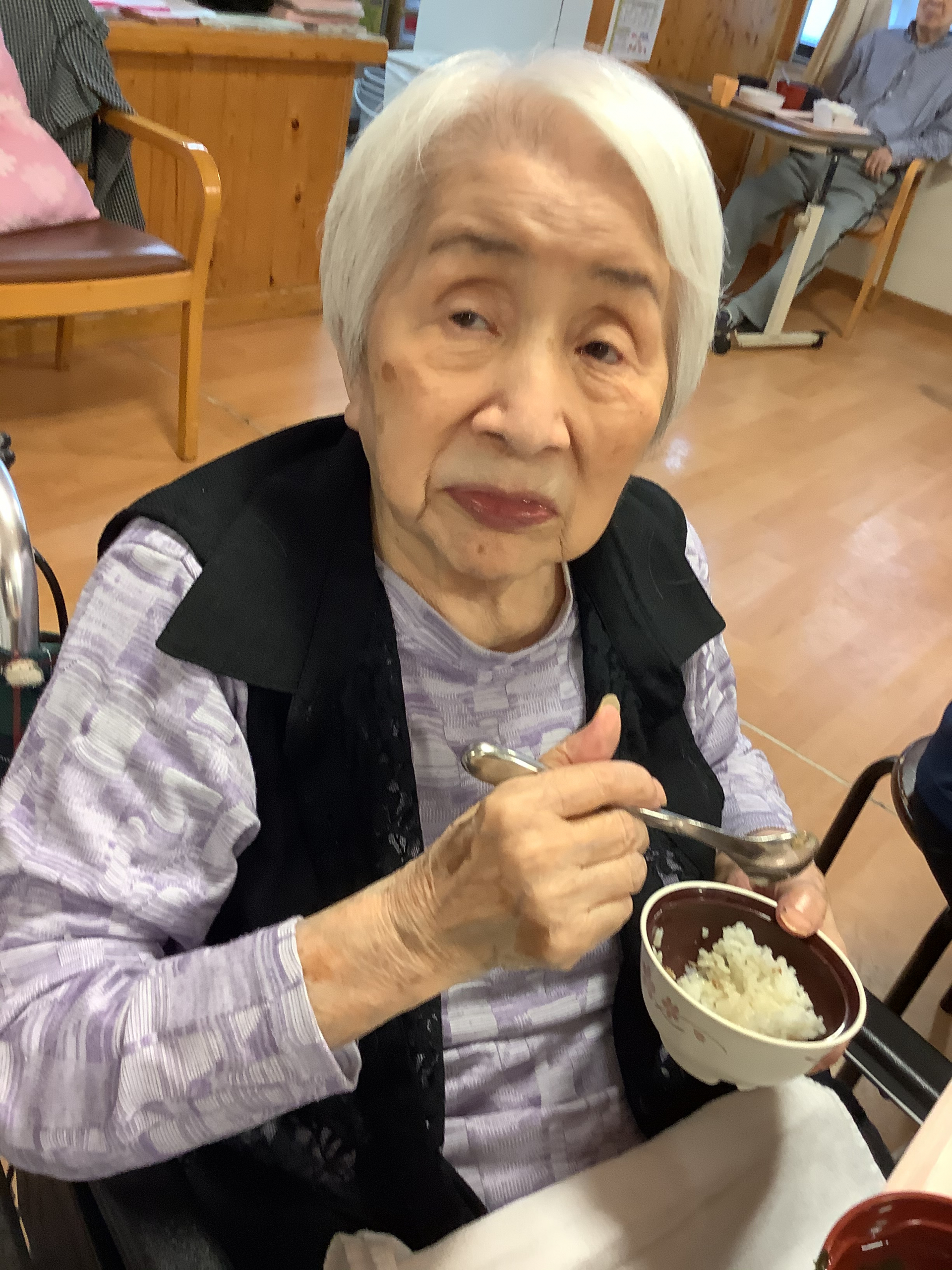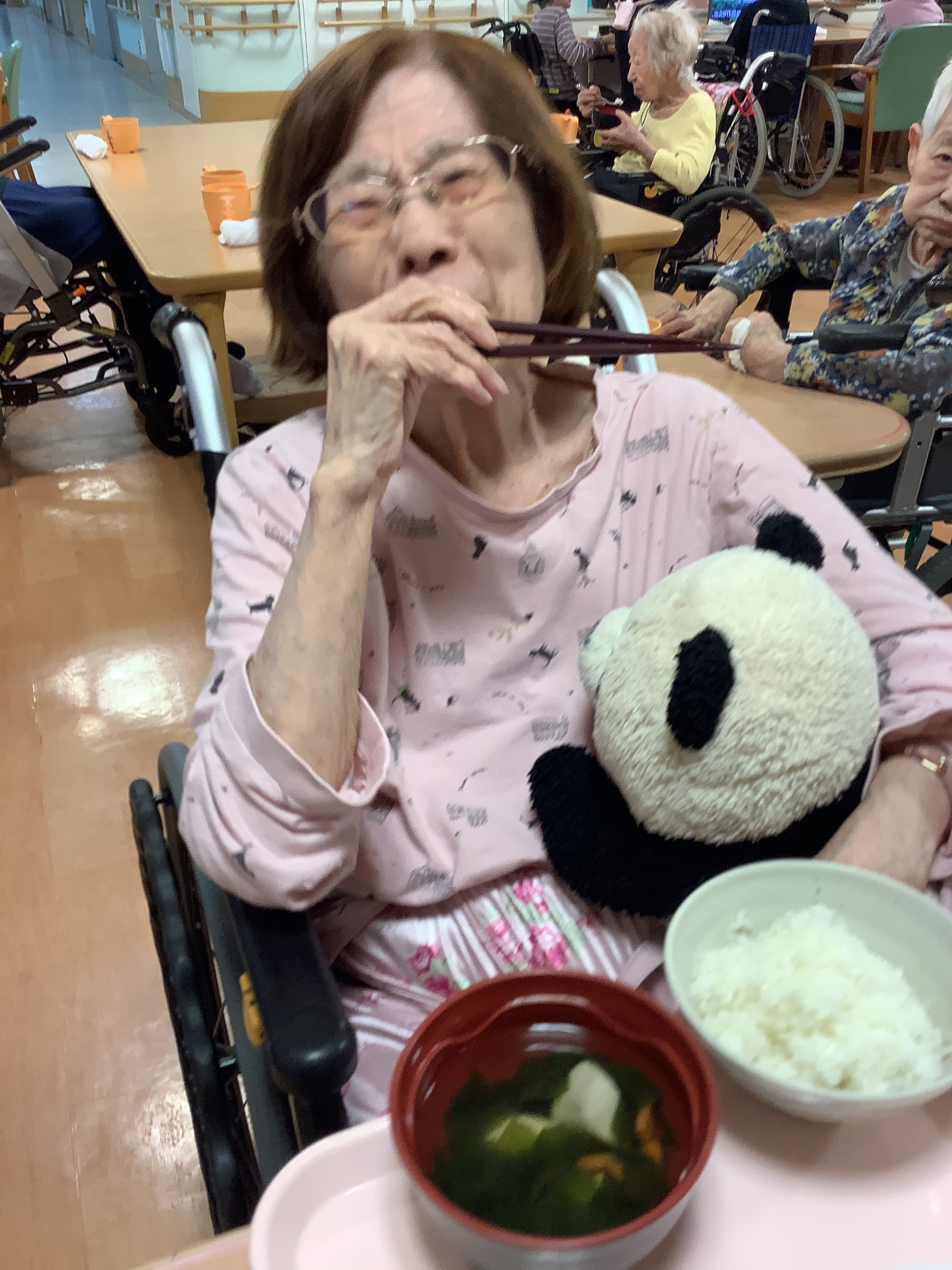 *外食気分を味わう!イベント食…「おでかけランチ~吉野家~」その1 【お食事風景】【入居者様の素敵な笑顔】*
