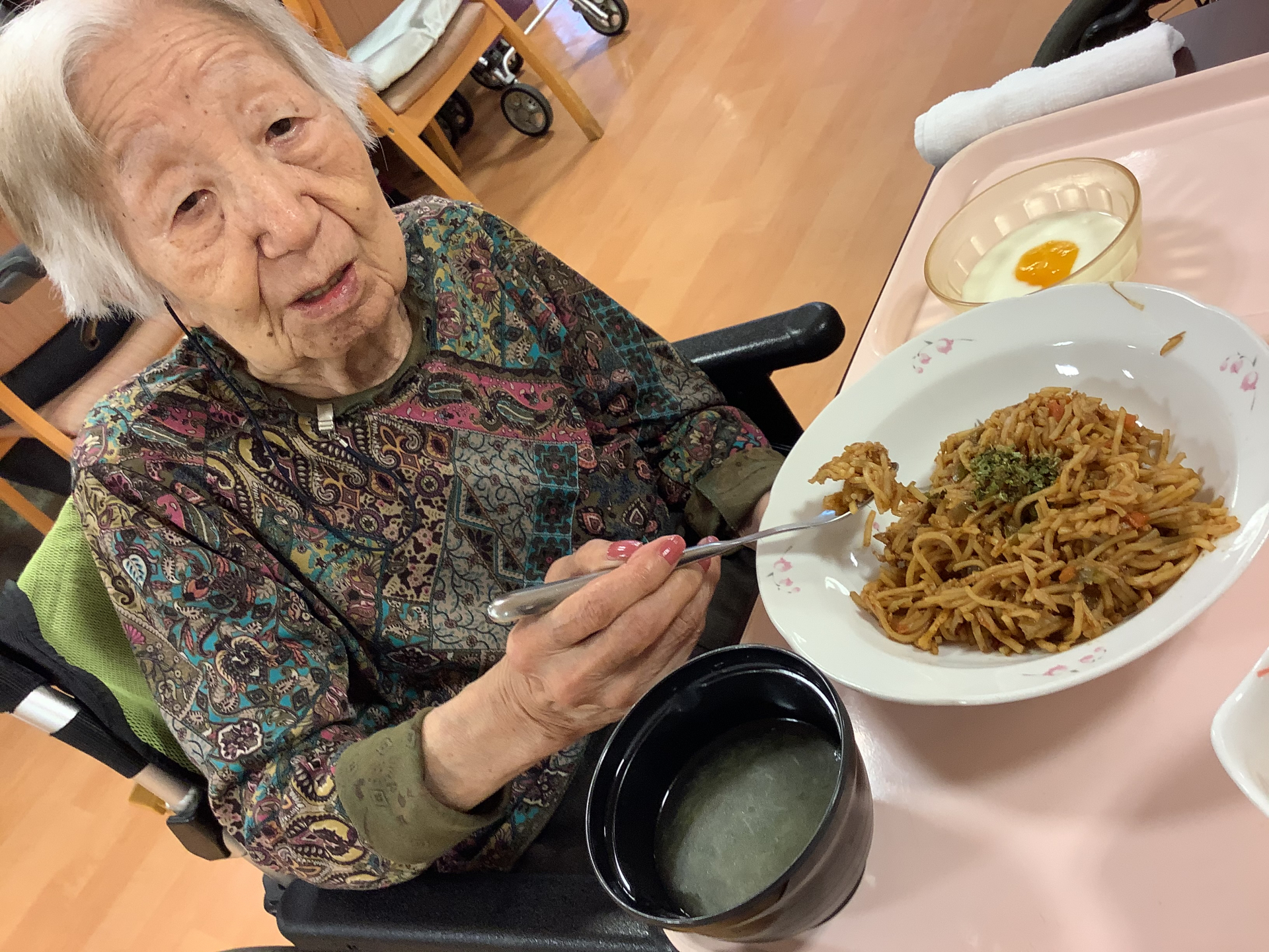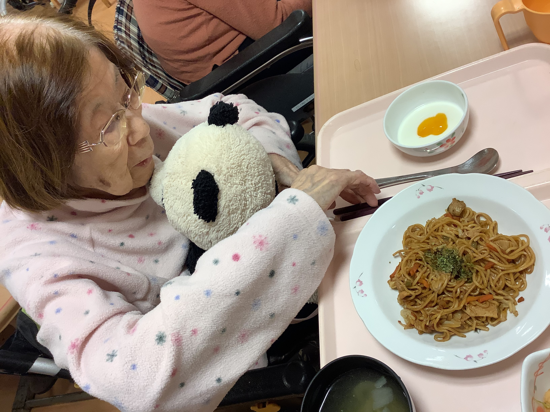 *麺の日・イベント食は…「ソース焼きそばランチ」 その1【お食事風景】【入居者様の素敵な笑顔】*