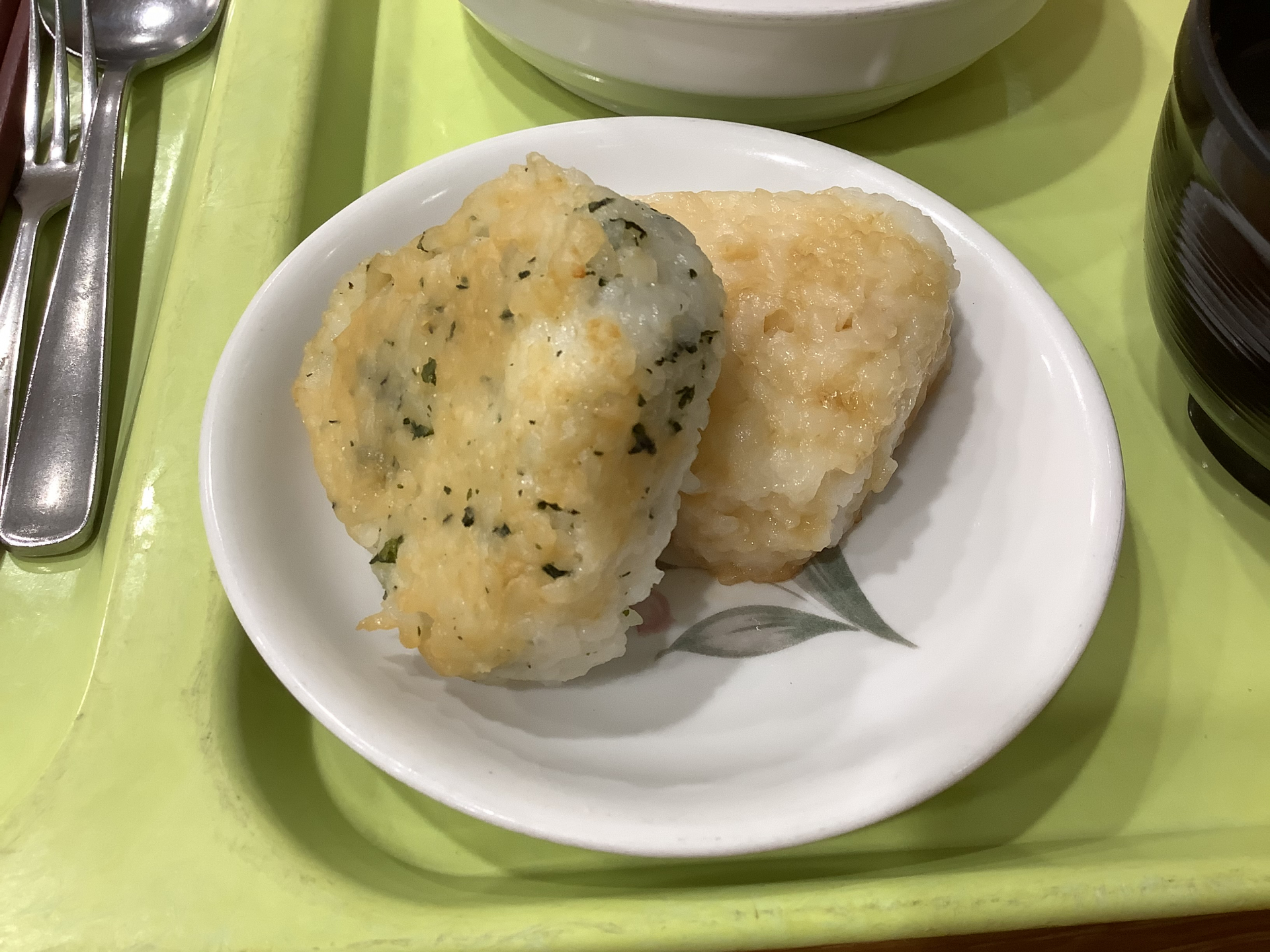 醤油の焼きおにぎり、味噌と青しそで味付けされたおにぎり。