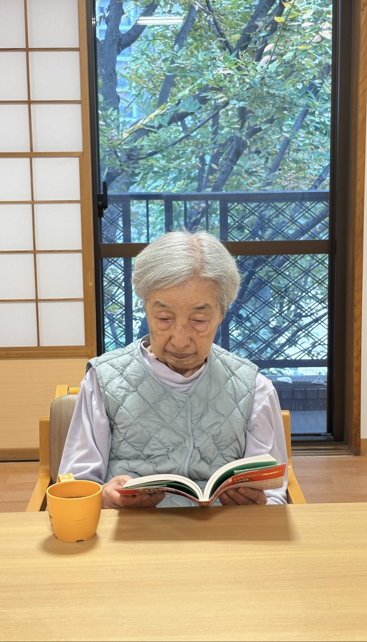 今朝はお散歩に出かける予定でしたが、外は少し曇り空。ひんやりとした風も吹いていたので、今日は施設の中でゆっくり過ごすことにしました。