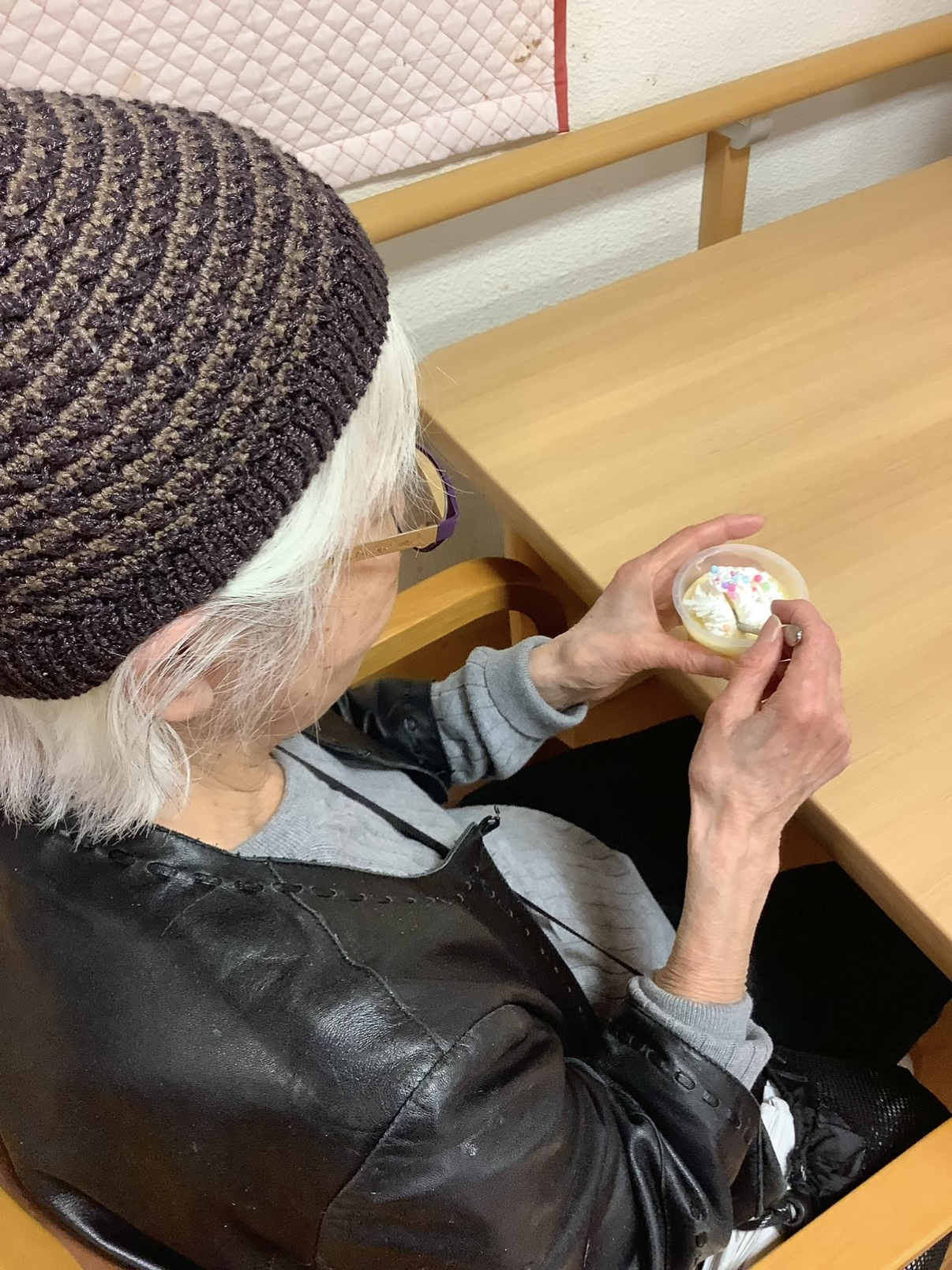 おやつの時間には、プリンを召し上がって頂きました。