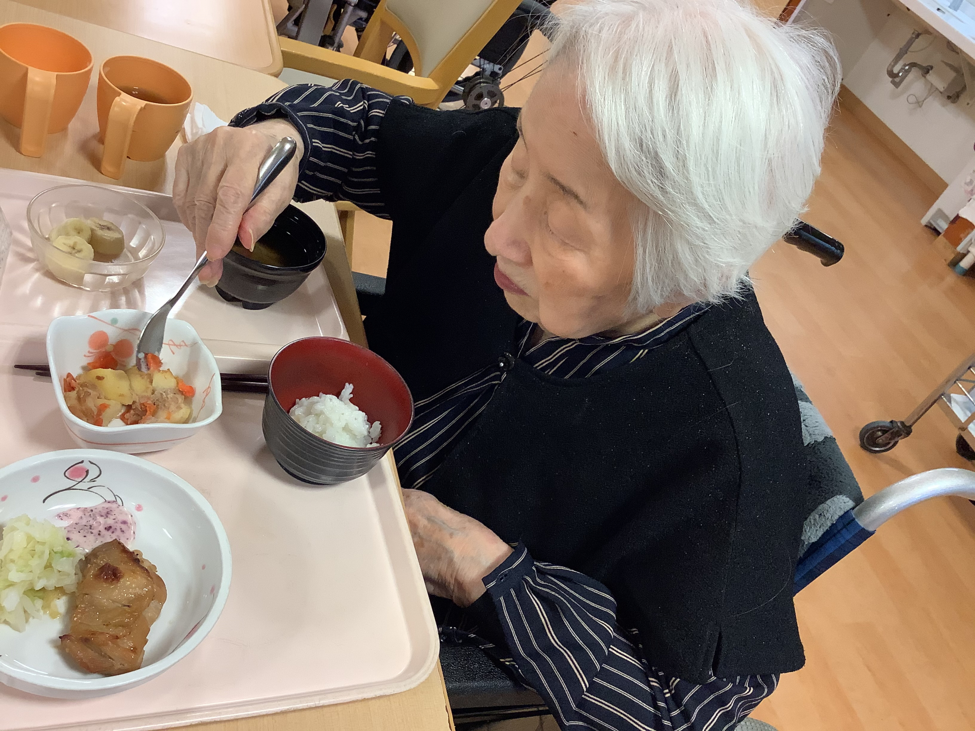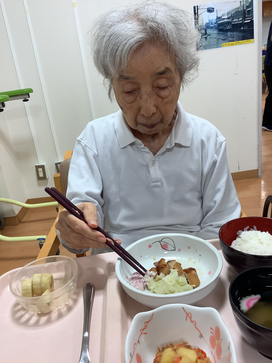 ↑こちらの入居者様、桜のような優しいピンク色のお洋服をお召しになっていますね。