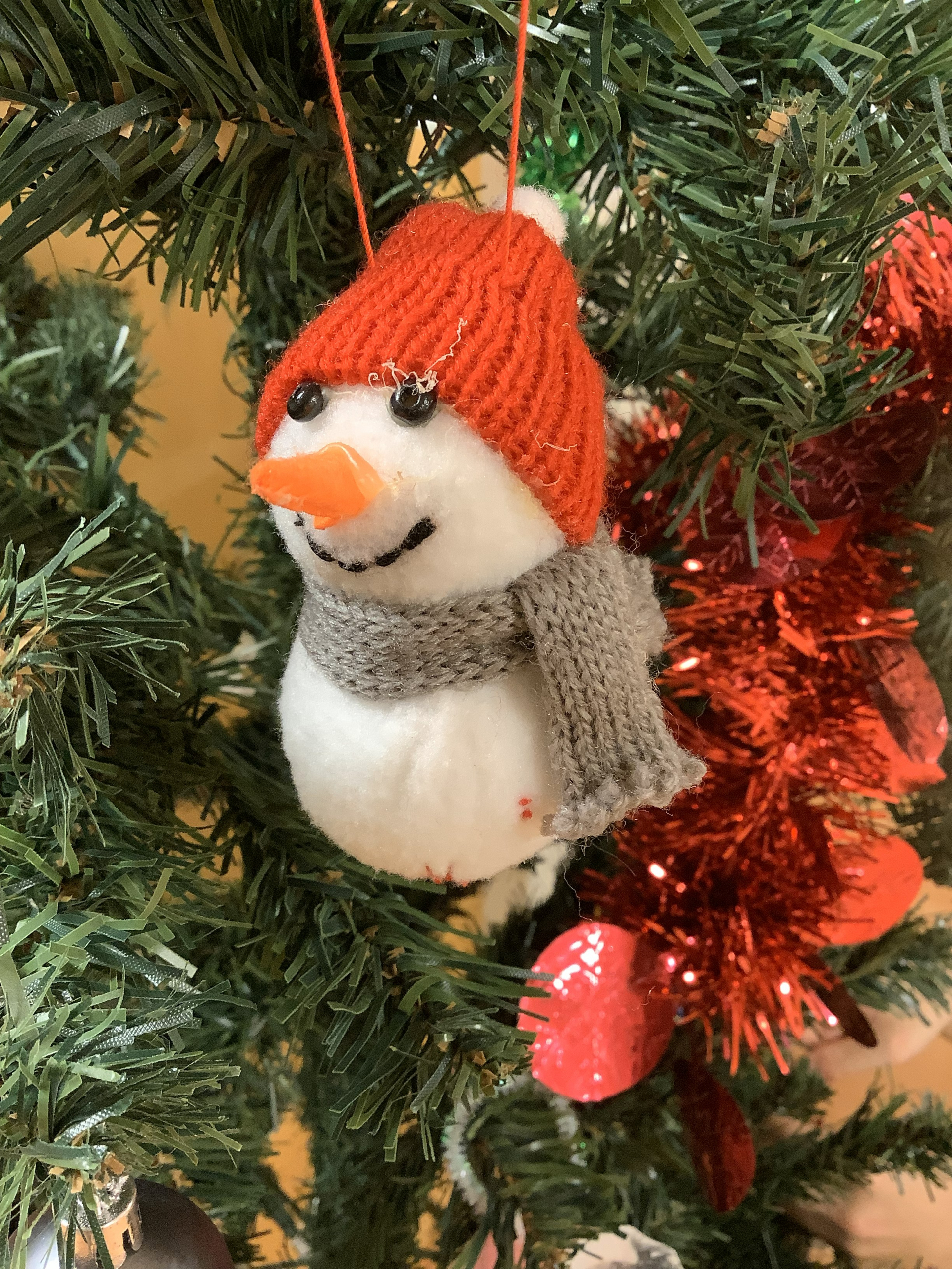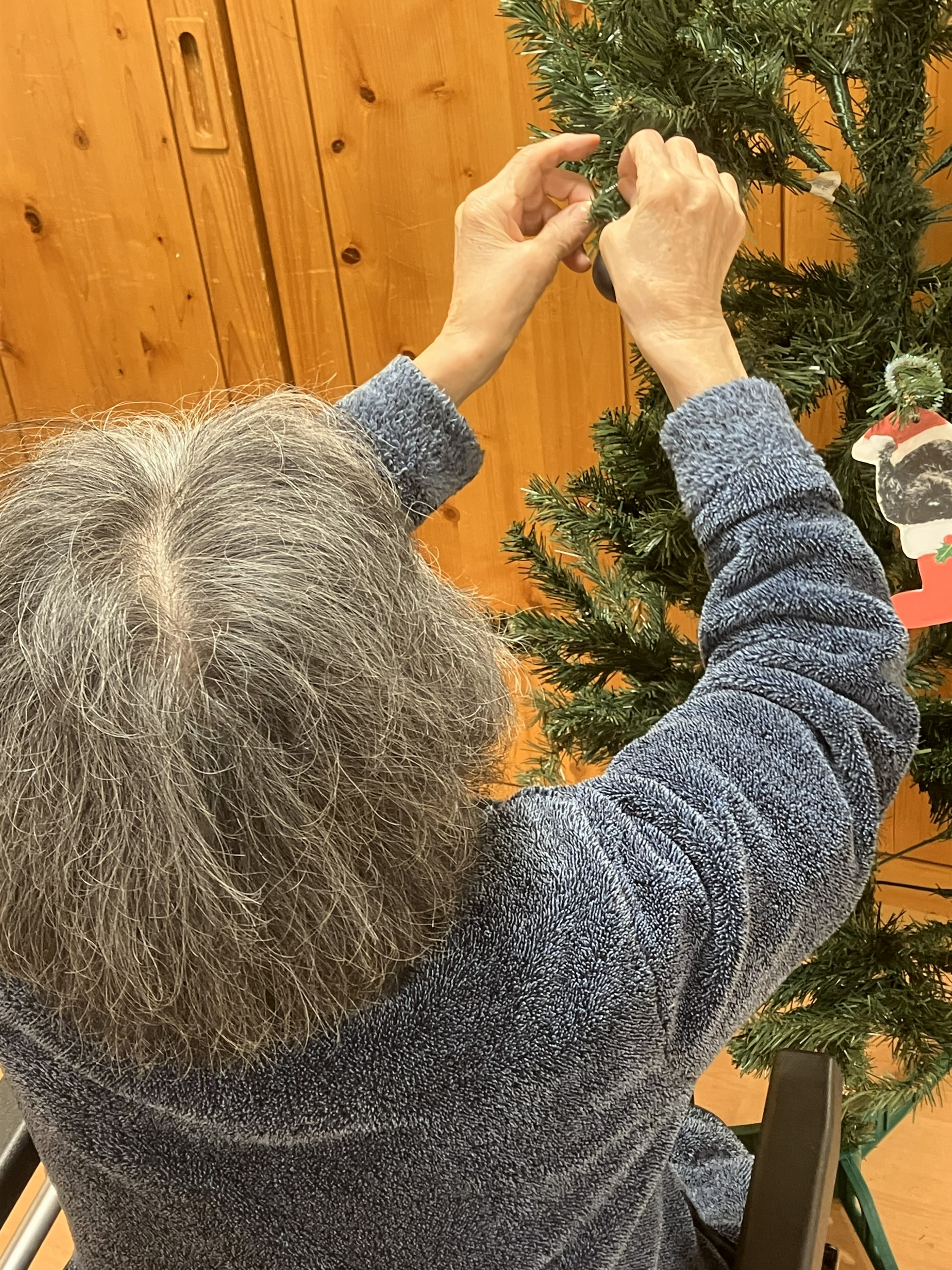 雪だるまの飾りを見て「可愛いわね、どこ飾ろうかしら」と楽しそうに飾りつけしてました。