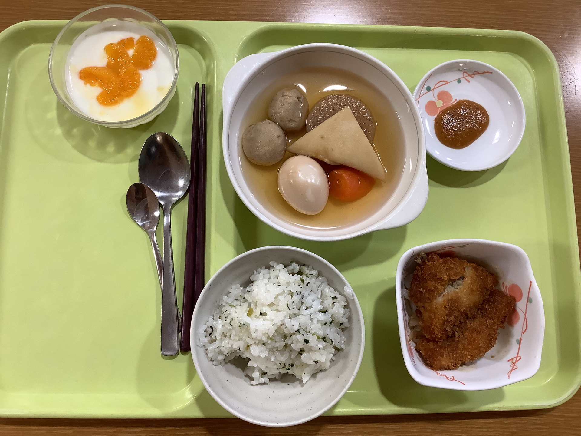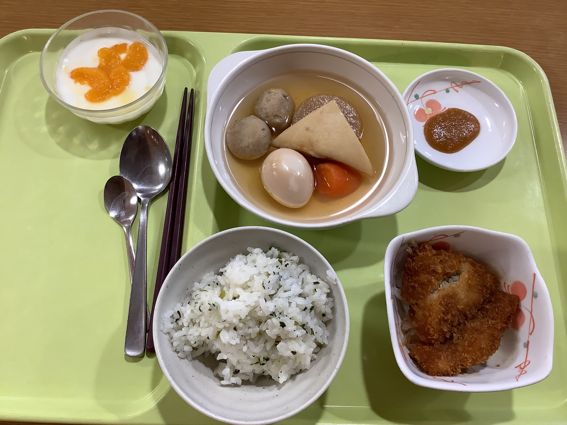 「小田原おでん」の特徴でもある梅味噌。入居者様に大好評で、単独で舐めて召し上がったり、おでんにちょこっと付けて召し上がったり、それぞれのスタイルで堪能されていました。