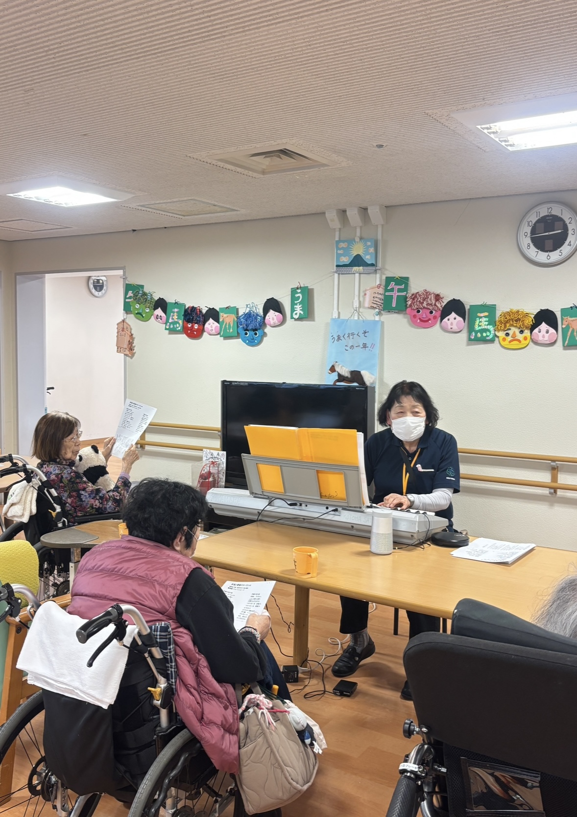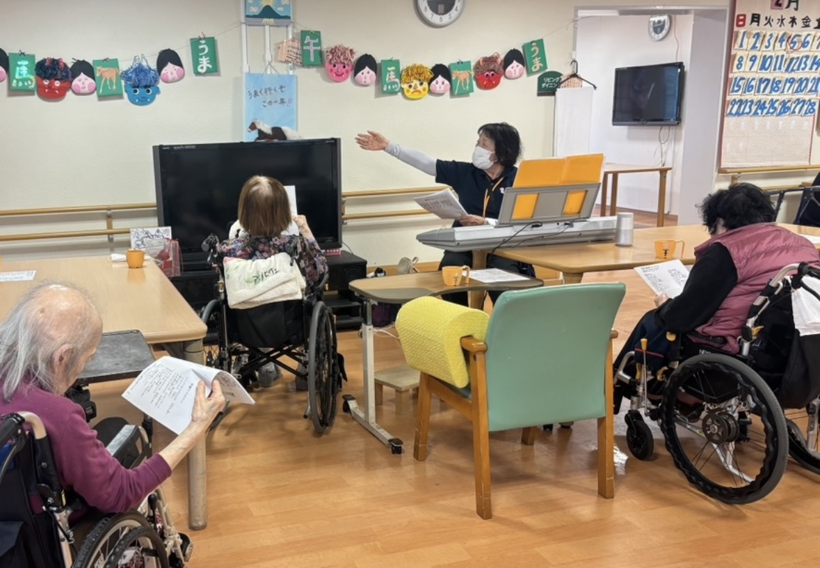 本日は音楽療法の時間に、「赤鬼と青鬼のタンゴ」など、節分にちなんだ歌をご利用者様で一緒に歌いました。