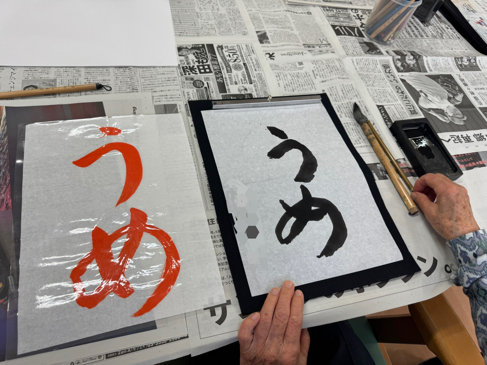 途中、書道の先生からアドバイスを受けながら完成した作品は