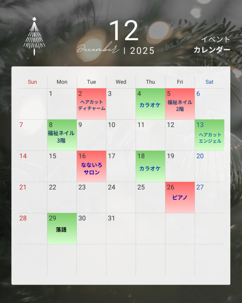 2025.12.09 ある日の午後🌆 活動報告 2025.12.08 仕事してます٩( 'ω' )و 活動報告 2025.12.05 飛ぶゲームの楽しみ 活動報告(IN) 2025.12.05 季節の変わり目も静かに感じながら 活動報告 2025.12.04 良い景色ですね 活動報告(IN) 2025.12.04 本日の夕食 お食事 2025.12.04 手紙 活動報告 2025.11.28 R7年12月等々力の家イベントカレンダー 特別養護老人ホーム 2025.11.27 ユーチューブ観賞 活動報告(IN) 2025.11.26 1階ロビーのお花も冬を感じます 活動報告 2025.11.26 本日の昼食 お食事 2025.11.25 秋の味覚 お食事 2025.11.23 もみじを見る 活動報告 2025.11.21 クリスマスツリーを飾りつけよう!🎄 活動報告 2025.11.20 カラオケボランティアと一緒過ごした時間 活動報告 1 2 3 4 5 6 … 38