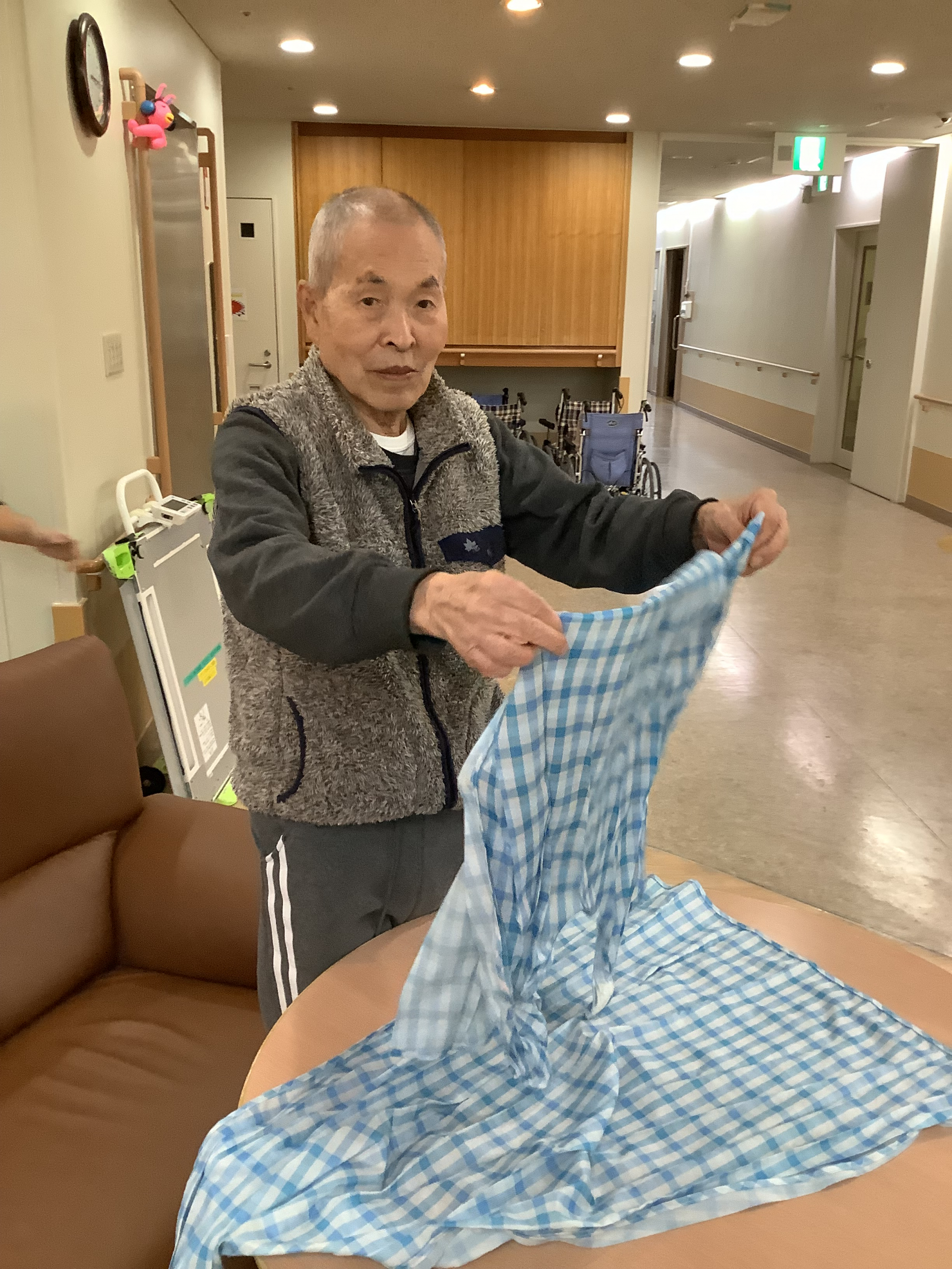 2025.11.15 活動報告 男性でもたたみ物をしますᕦ(ò_óˇ)ᕤ Tweet シェアする 数日前のご様子です 「たたみ方分からないよ」と言いながらも丁寧にたたんでくださいました! ありがとうございました^^ 介護課 中尾真 前の記事 2025.11.15 活動報告 手工芸を作りましょう 次の記事 2025.11.14 活動報告 カルタをやりましょう! 一覧へ戻る