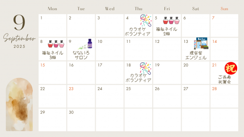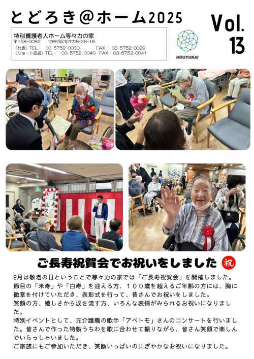 2025.10.16 福祉ネイルのご様子 3階 活動報告 2025.10.14 さつま芋ごはん🍠 お食事 2025.10.03 本日の福祉ネイル🌸 活動報告 2025.10.02 秋の便り🍁 活動報告 2025.09.26 秋の味覚🌰 お食事 2025.09.25 21日敬老会のお食事 お食事 2025.09.23 とどろき@ホーム 2025 Vol.13 リリース! 活動報告 2025.09.22 ご長寿祝賀会 活動報告 2025.09.16 本日の夕食 お食事 2025.09.09 本日の昼食 お食事 2025.09.07 9月のイベント情報! 活動報告 2025.09.06 福祉ネイルのご様子 活動報告 2025.09.05 本日の昼食🍚 お食事 2025.09.02 本日の昼食 お食事 2025.08.30 お花 活動報告(IN) 1 2 3 … 13