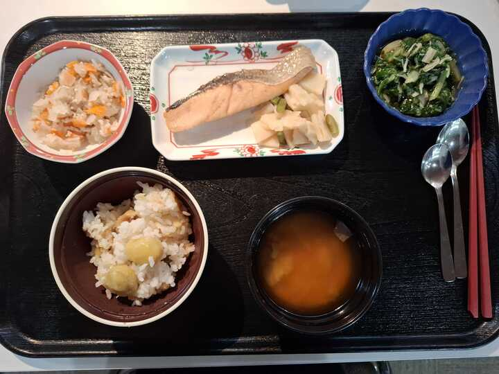 2025.09.26 お食事 秋の味覚🌰 Tweet シェアする 本日の昼食は「栗ご飯」でした! 少しずつ気温が下がってきて、季節の変わり目だと感じます。 そんな中、お食事にも秋の味覚が登場しました! 支援課 加藤 前の記事 2025.10.02 お食事 秋の便り🍁 次の記事 2025.09.25 お食事 21日敬老会のお食事 一覧へ戻る