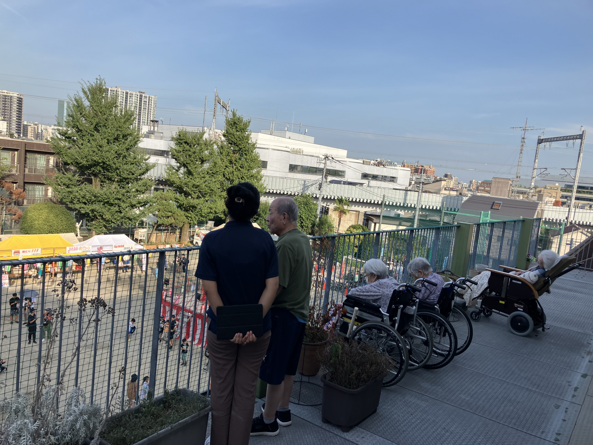 事務所に戻る途中で、2人の利用者様が戻ってきました