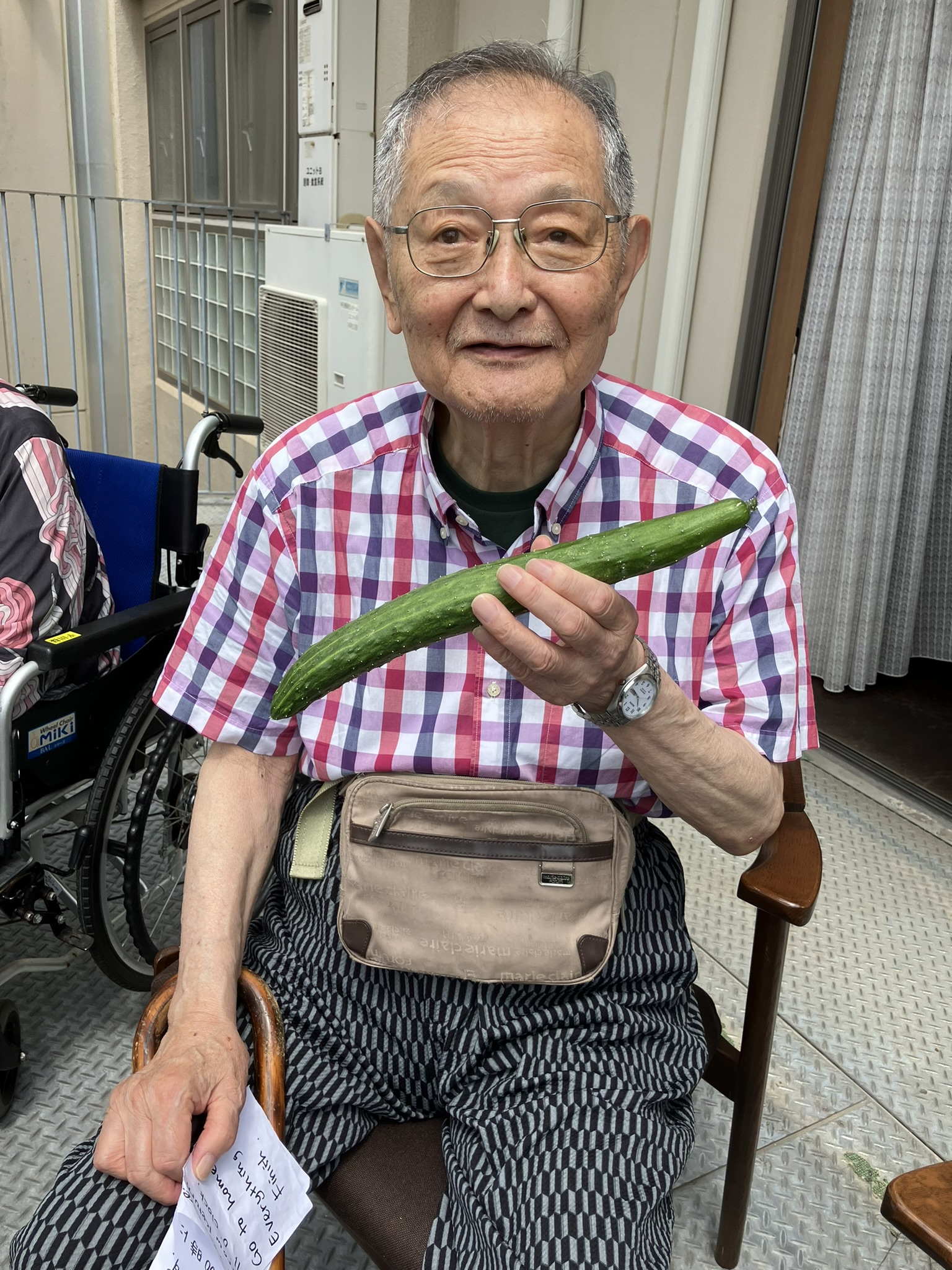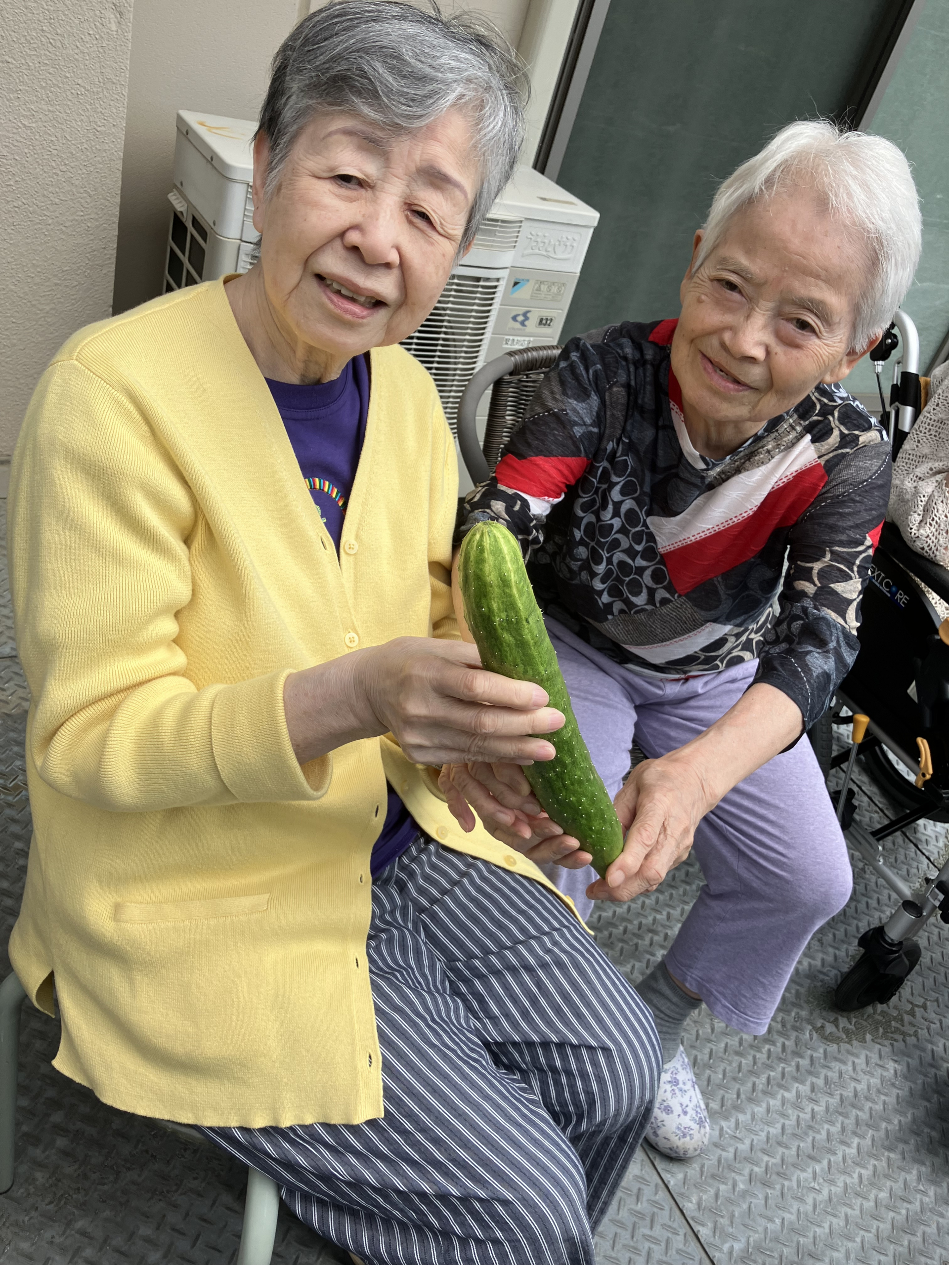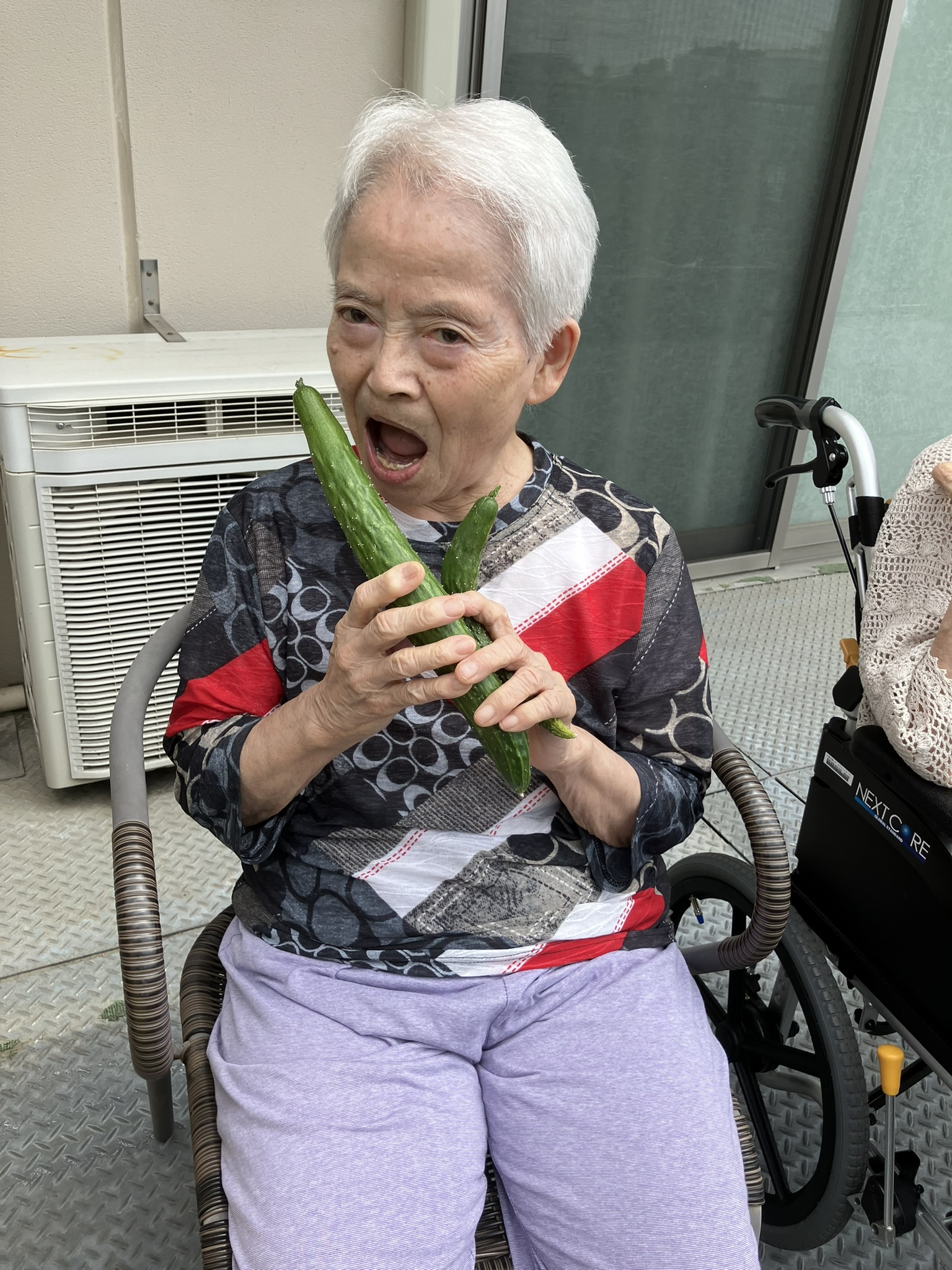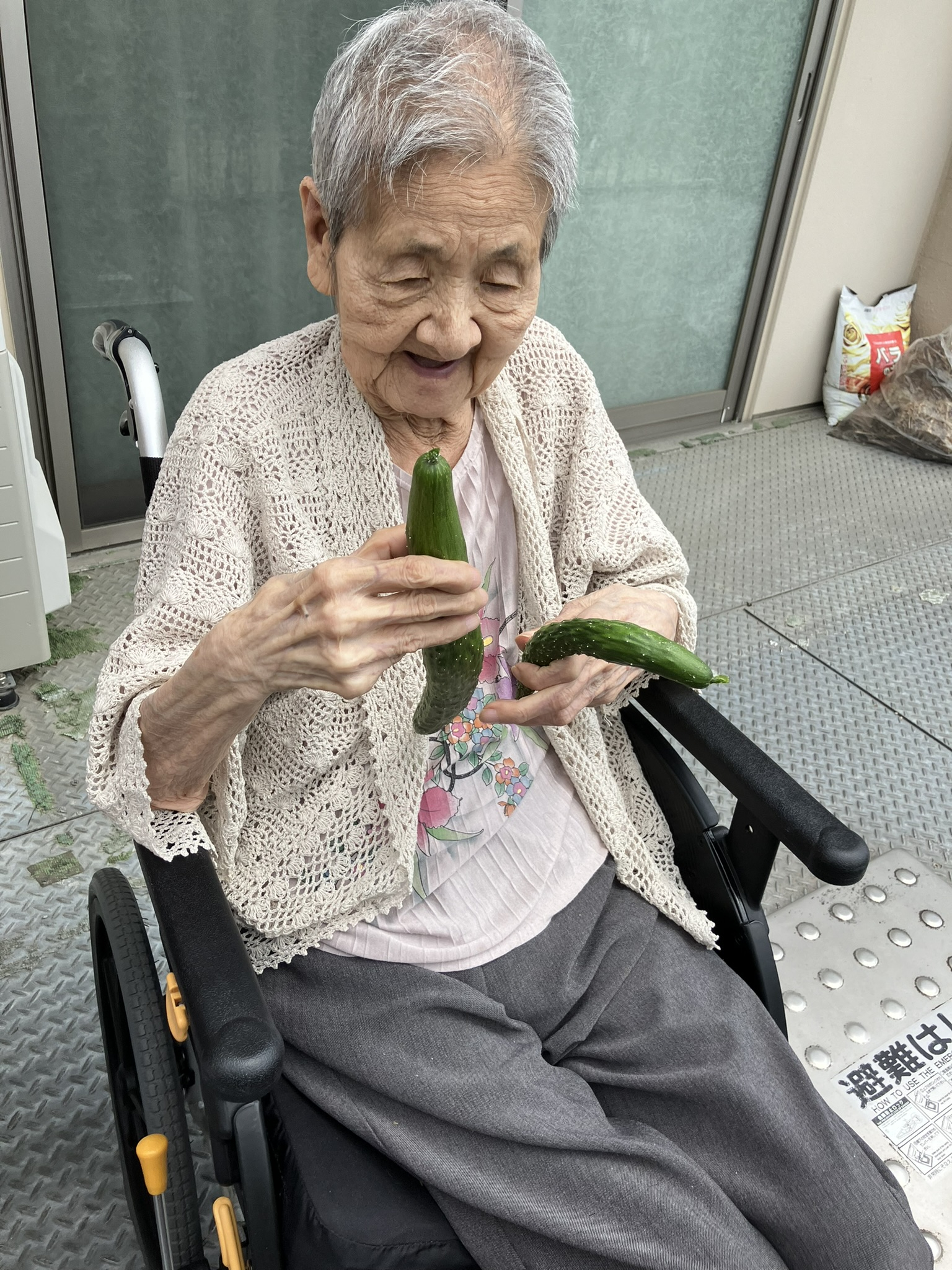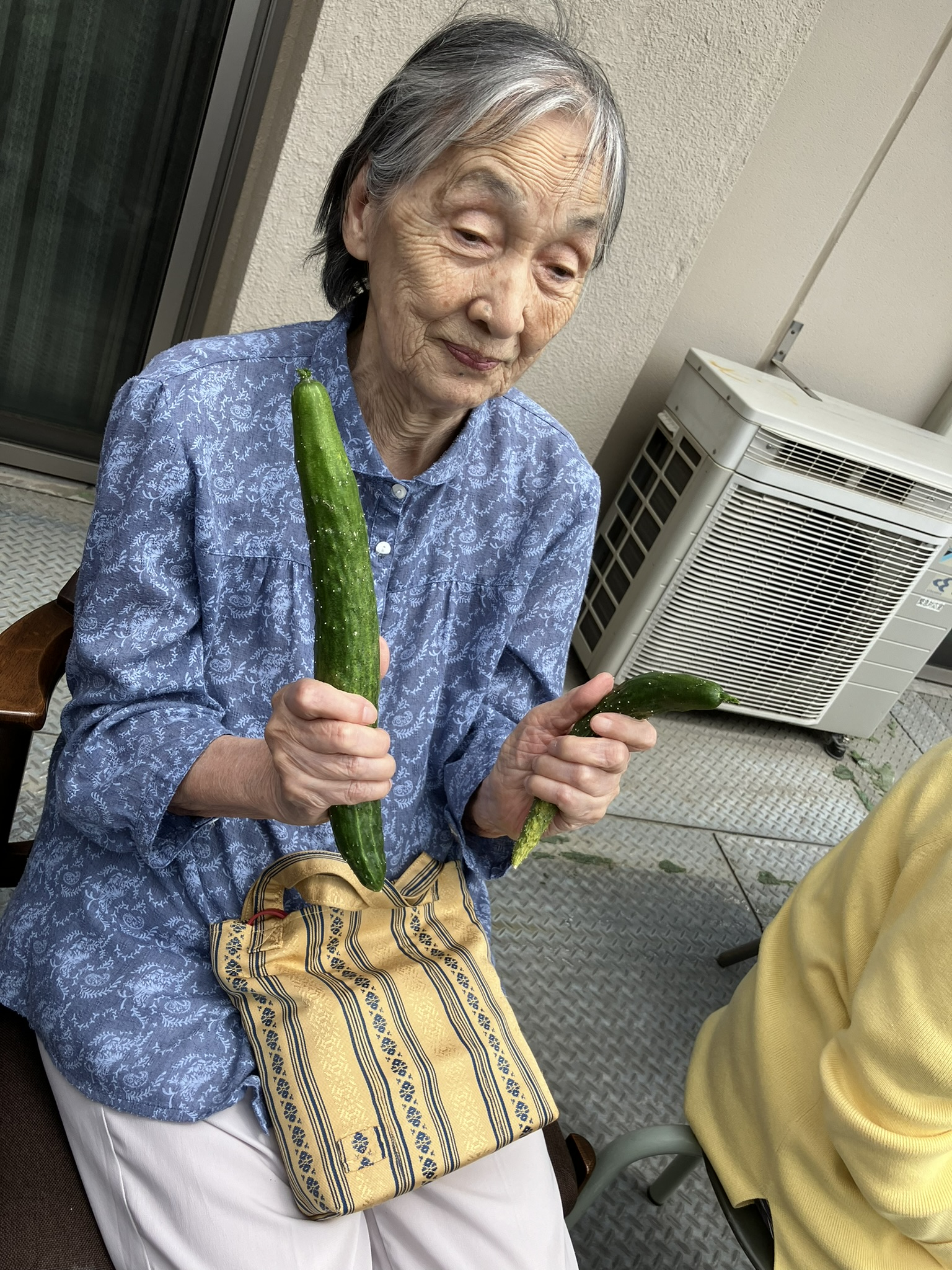 機能訓練士が3Fにある家庭菜園の収穫に「行きたい人~ヽ(*^▽^*)ノ゙ ハーイ!!」と手を挙げた方が