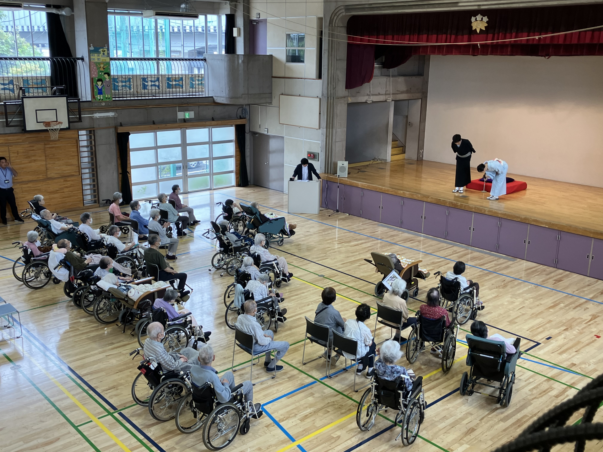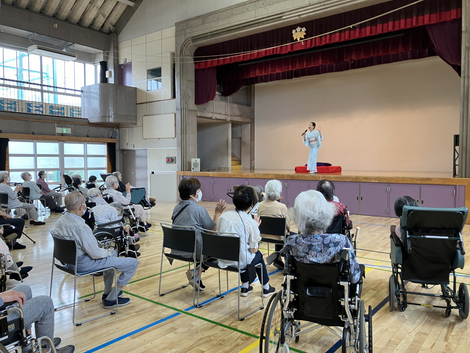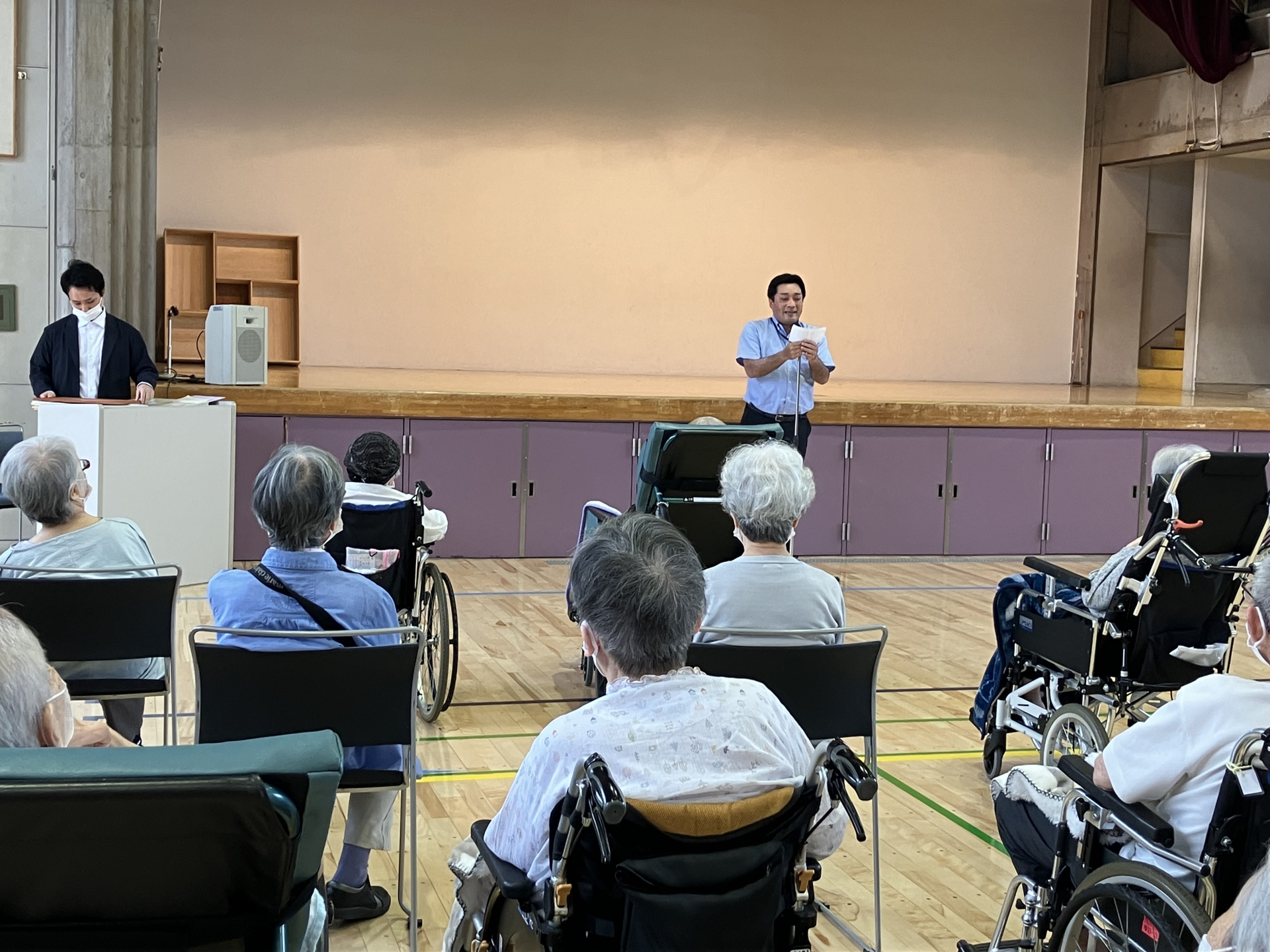 最初は、ラフターヨガといって、笑顔を作る体操をしてくださって、一生懸命マネをしながら、利用者様方が行っていました。