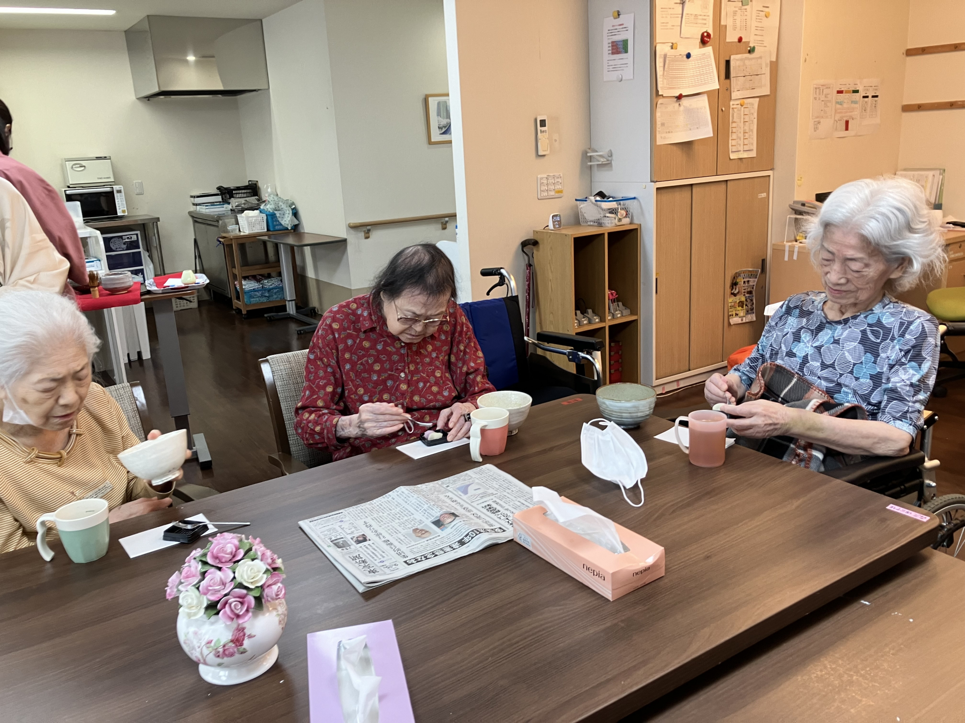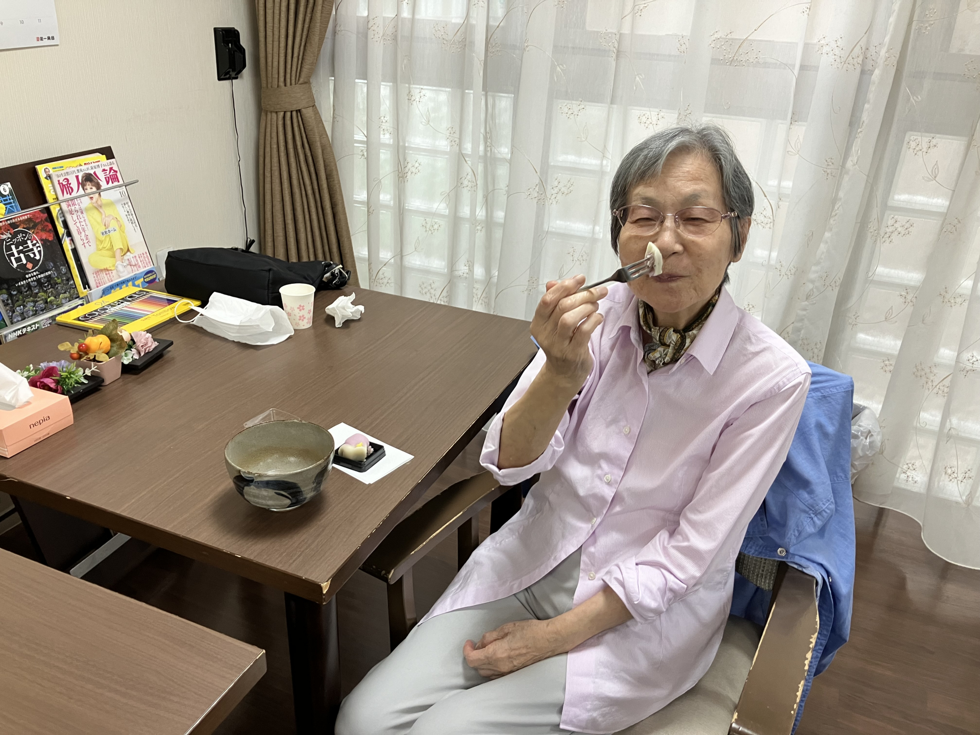 再び、ショートステイを覗いて見ると、美味しいお菓子を食べて、お話が盛り上がっているようで、