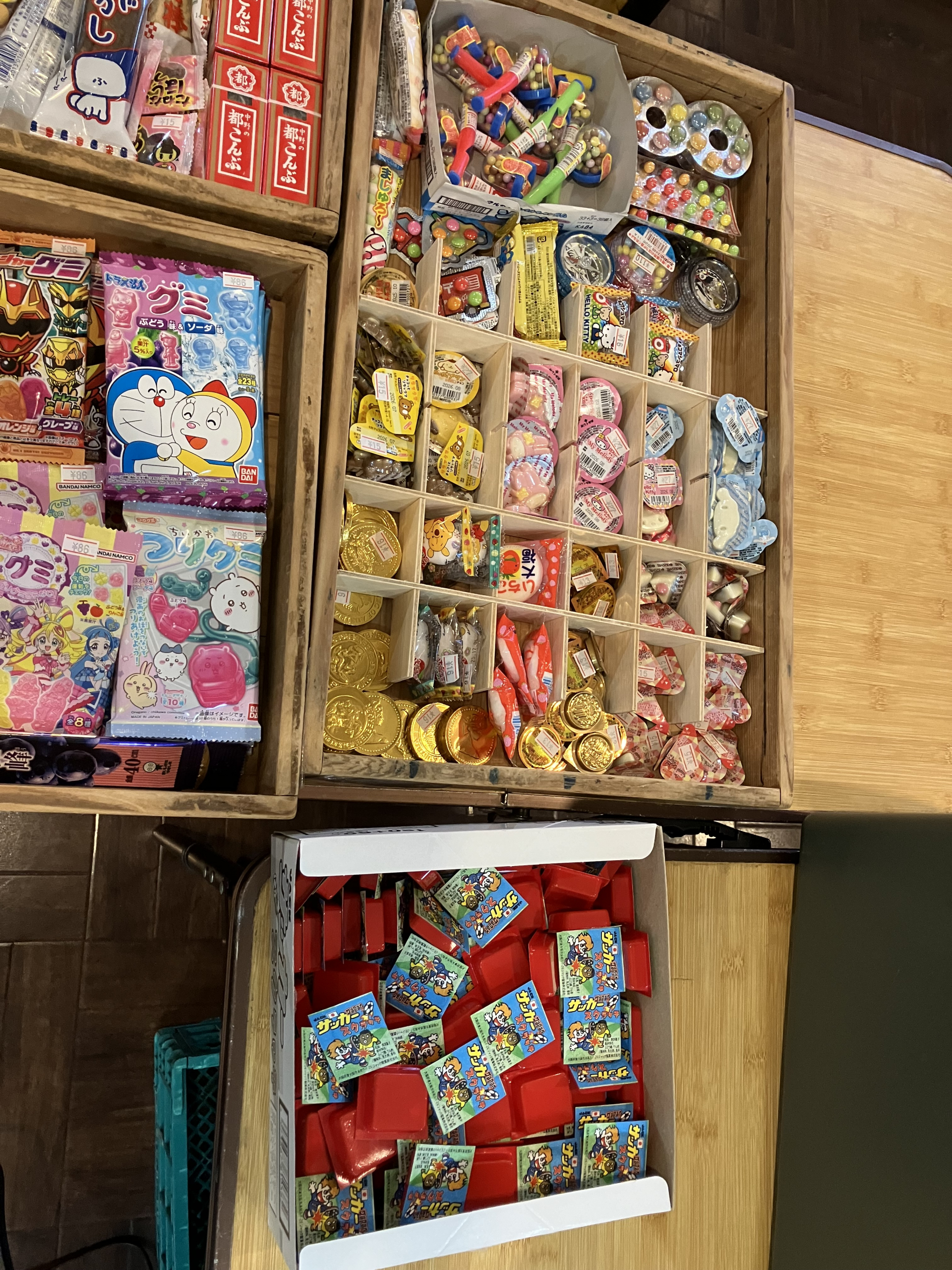 今回は、みなさんが楽しみにしていた駄菓子屋さんが来る日です