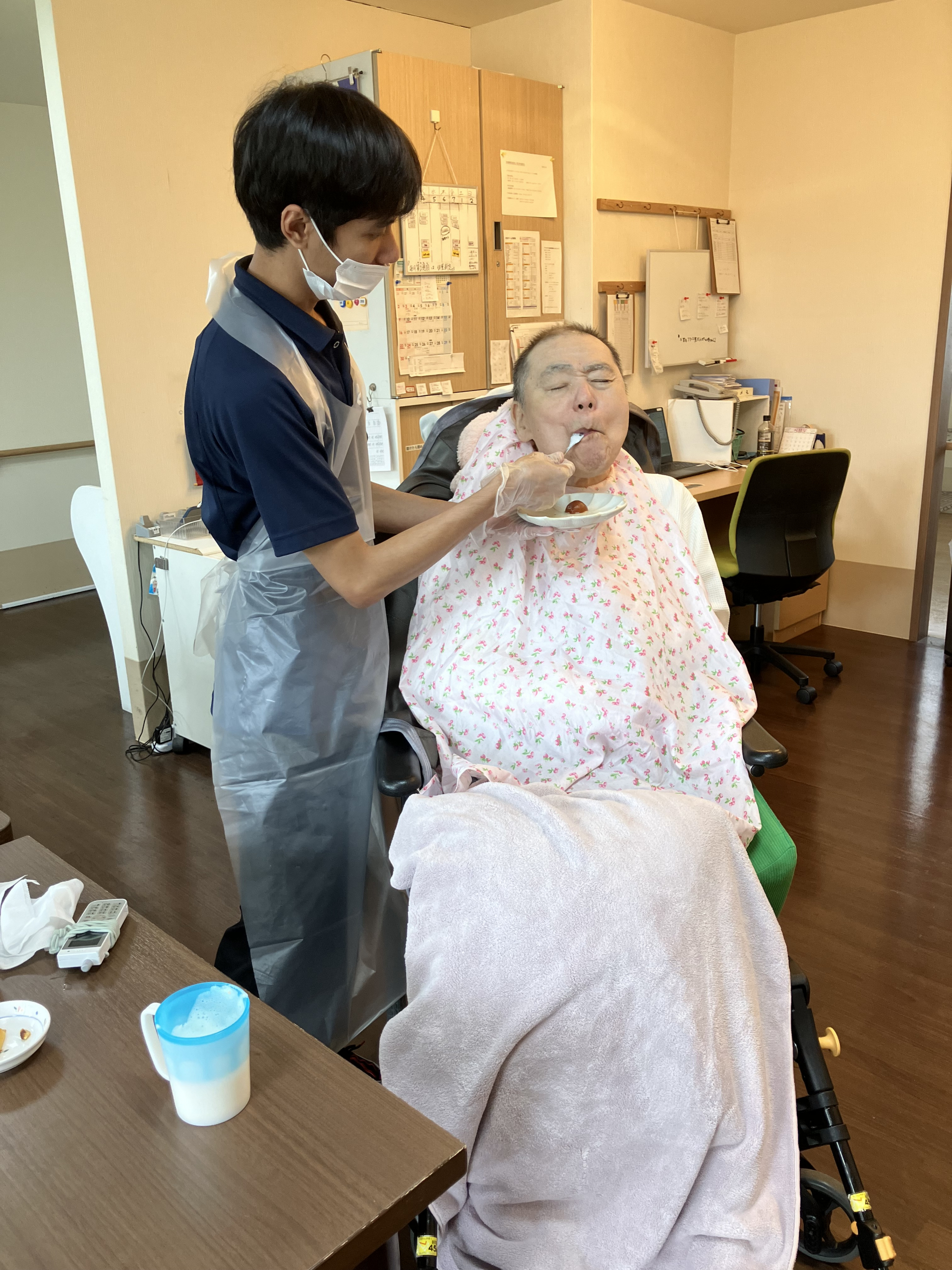 甘いお菓子が好きな利用者様、もうお口に入れた瞬間美味しそうですね