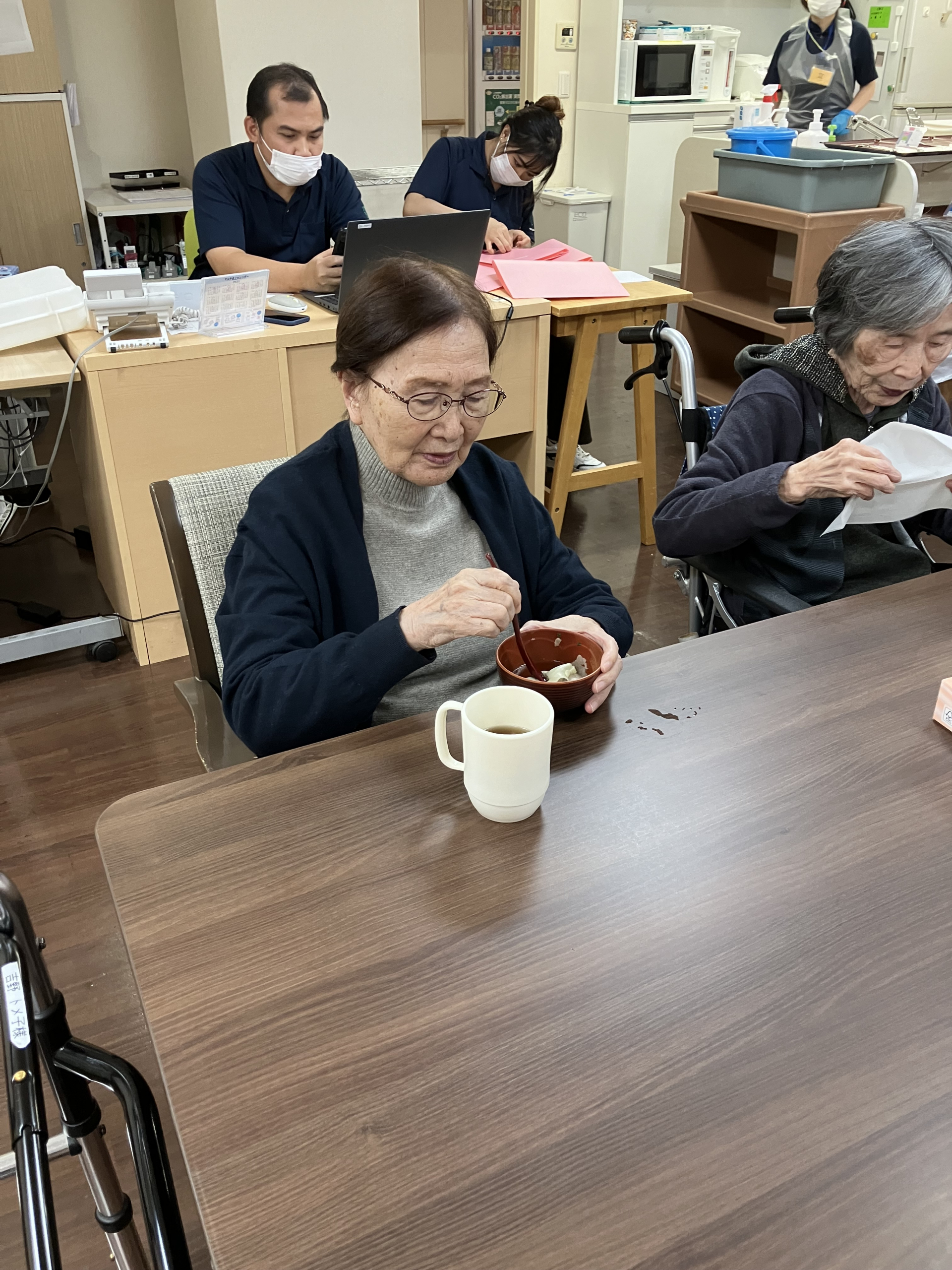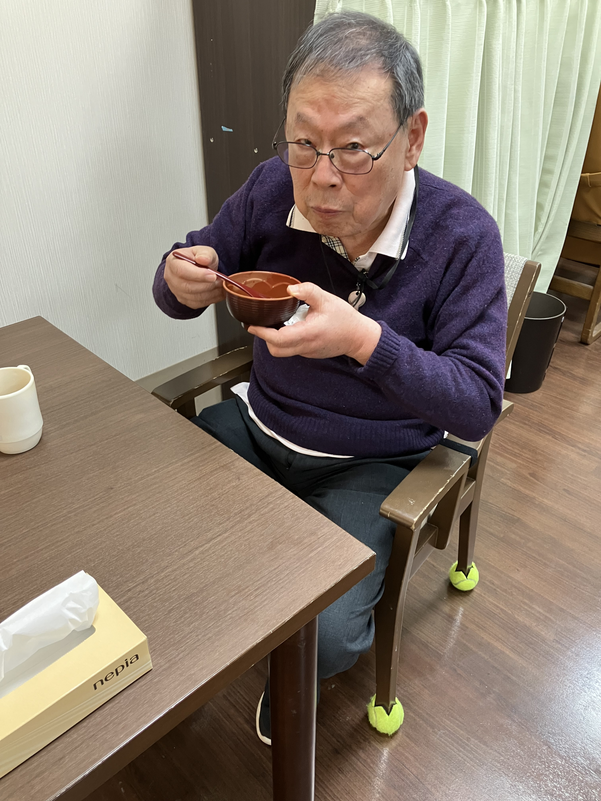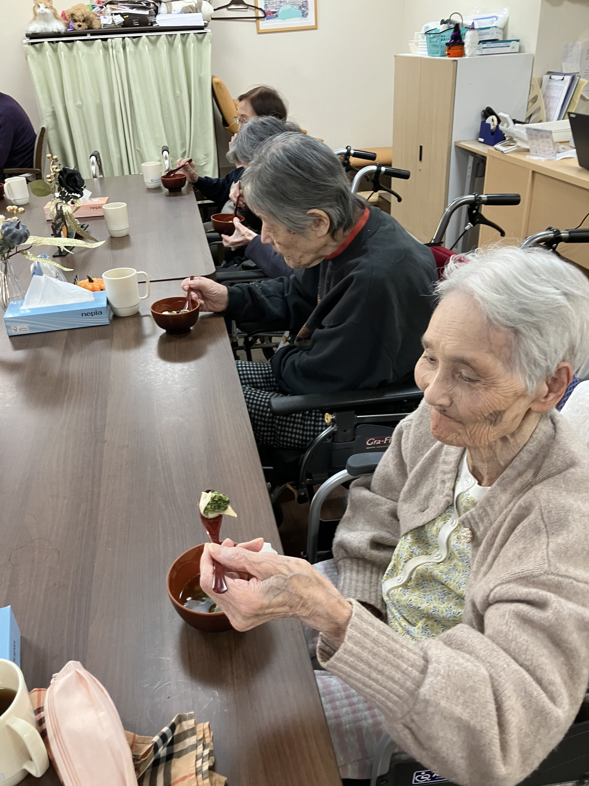 「味の濃さがちょうどいいですね~」と話すと「そう、ちょうどいいわね~」とお椀の底に残ったものも綺麗に召し上がっていました