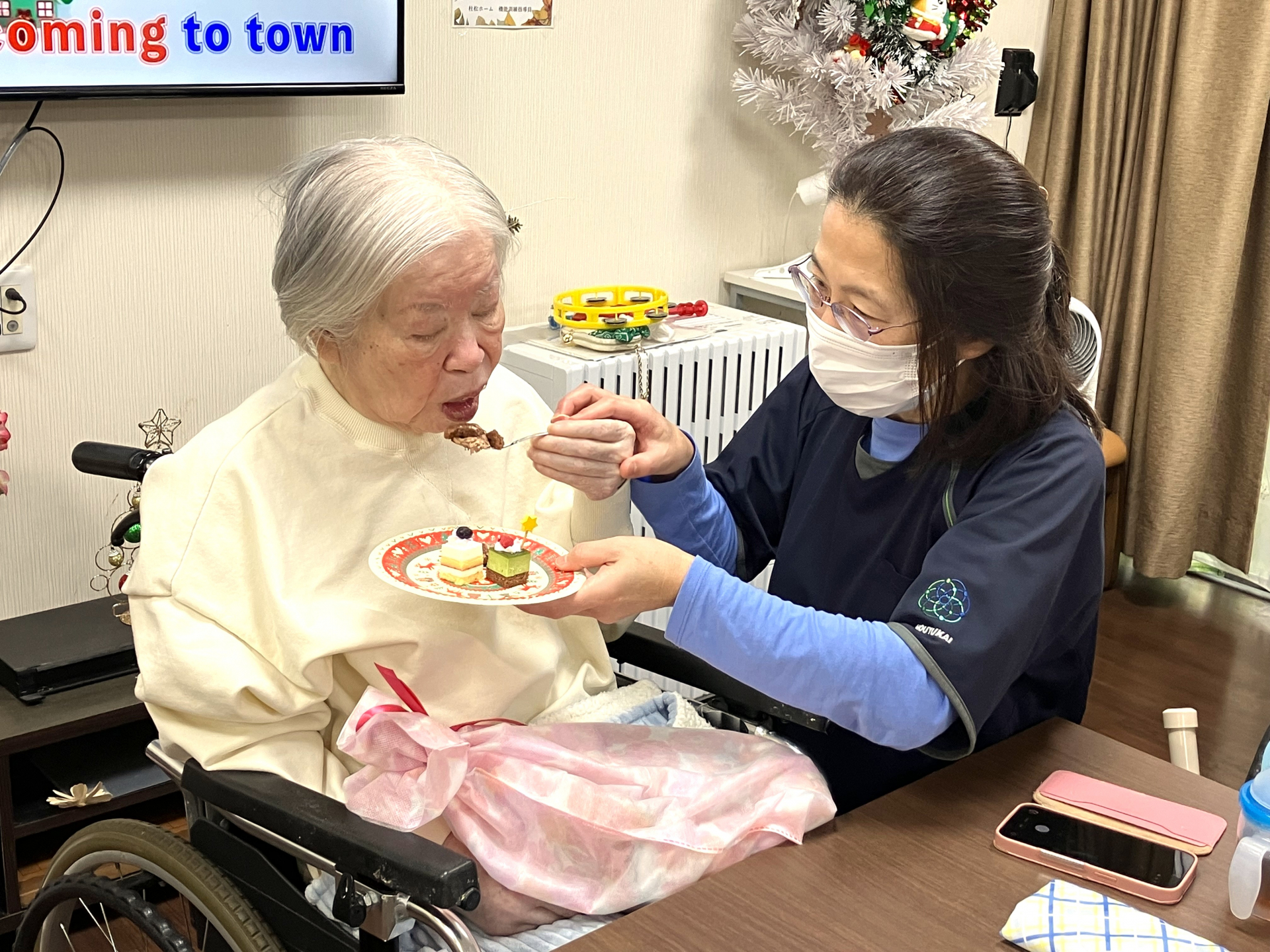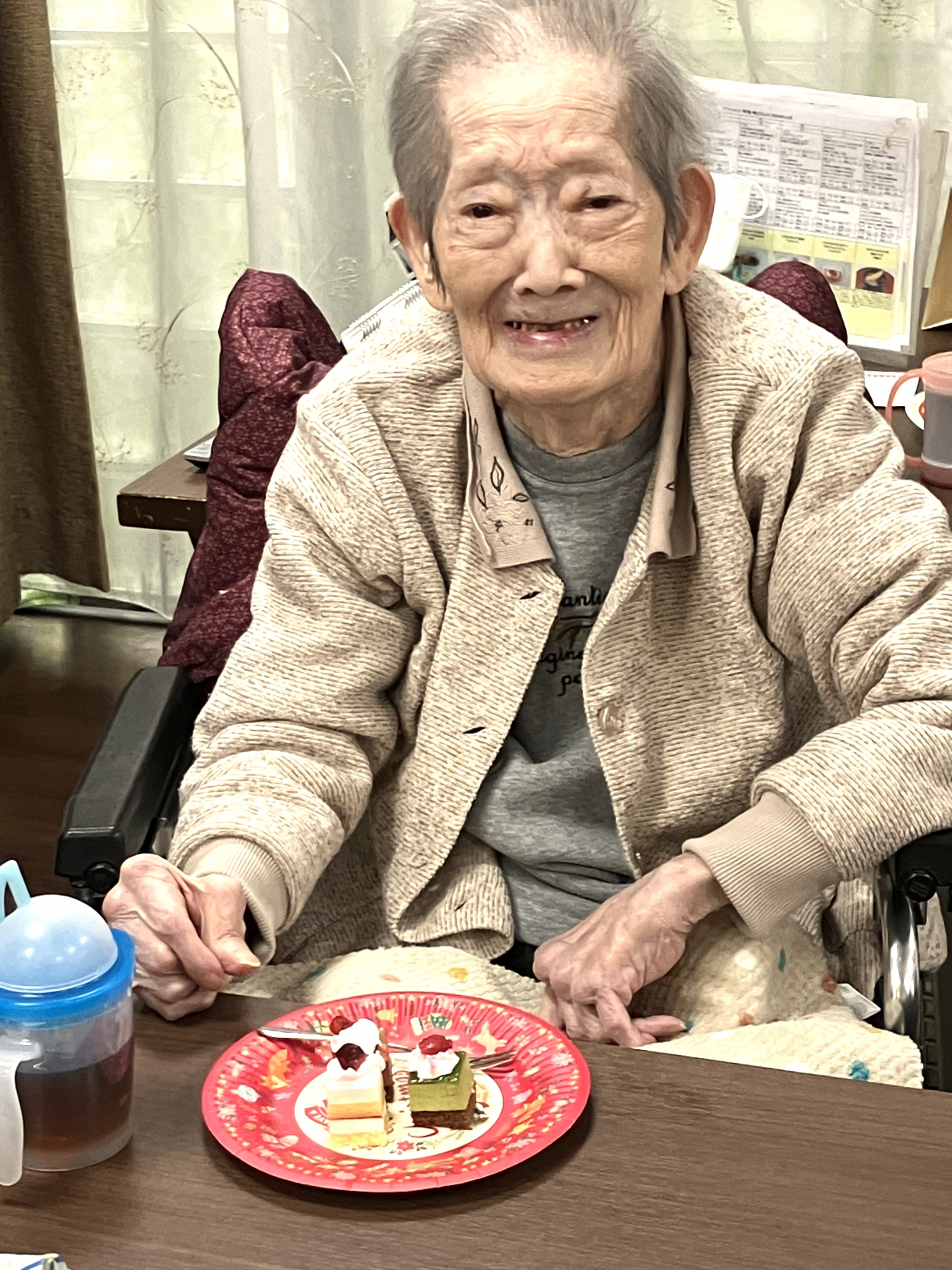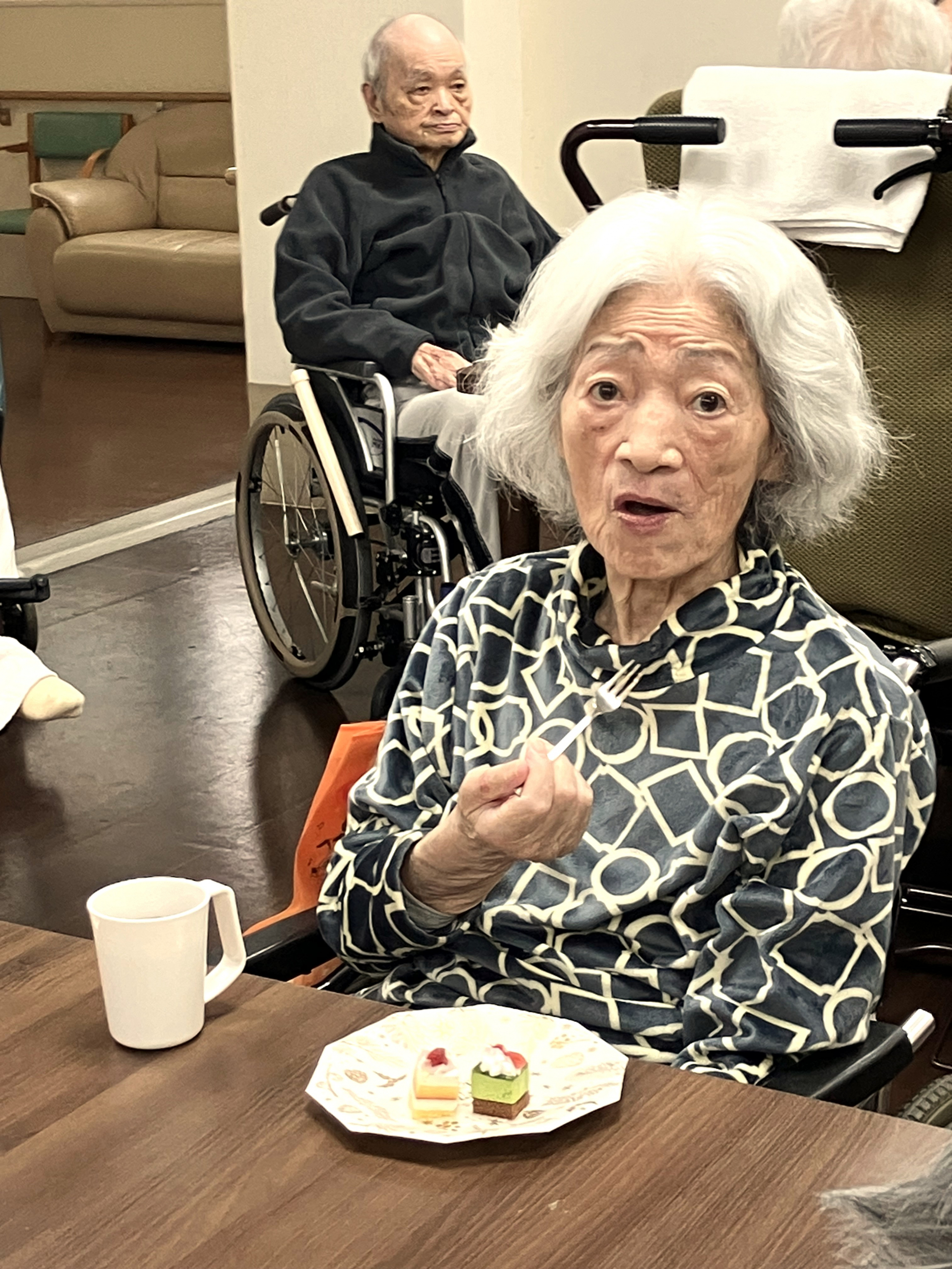 スタッフや周りの利用者様が心配で声かけると「ケーキ美味しいの~」とおっしゃっていました