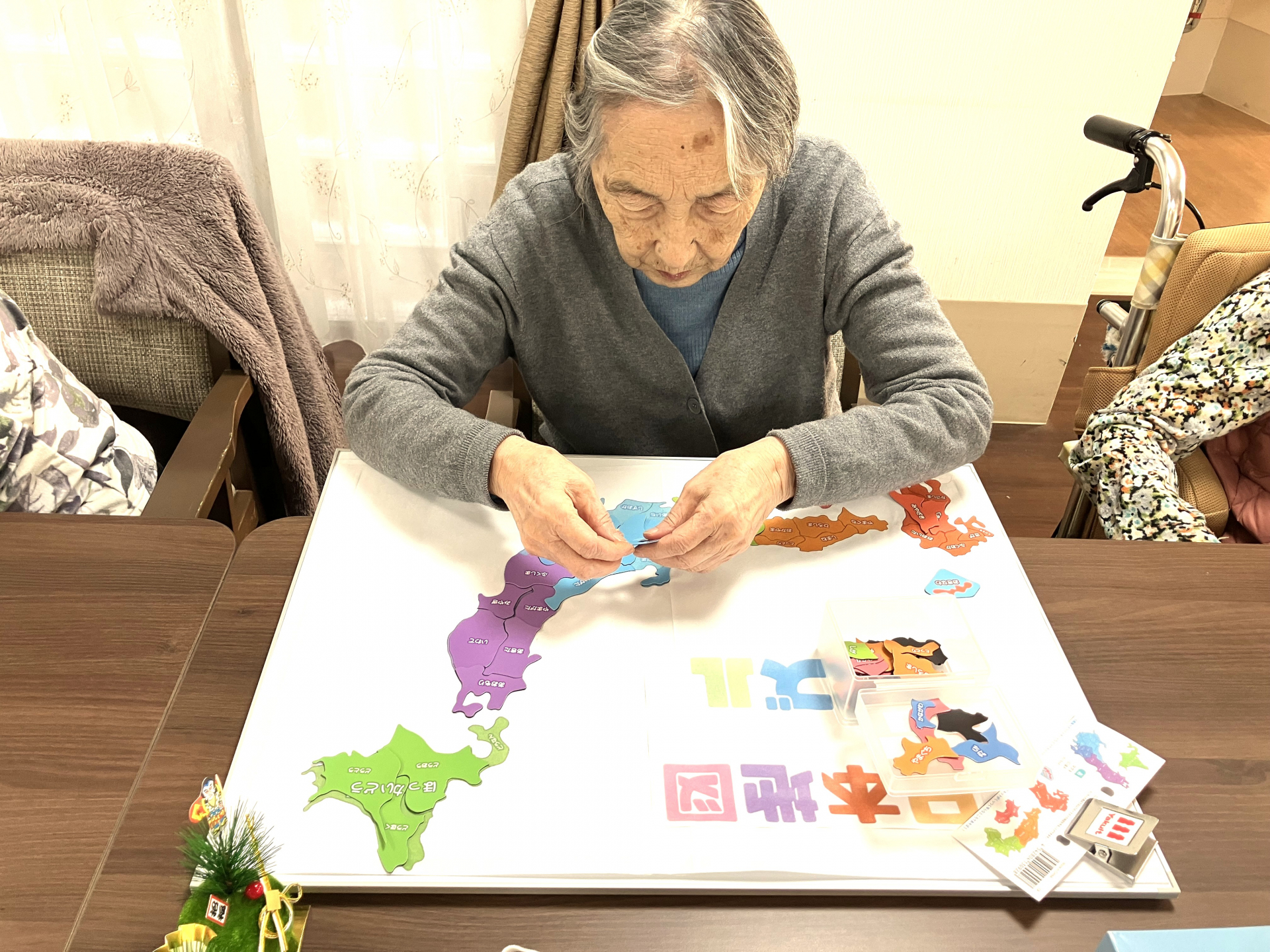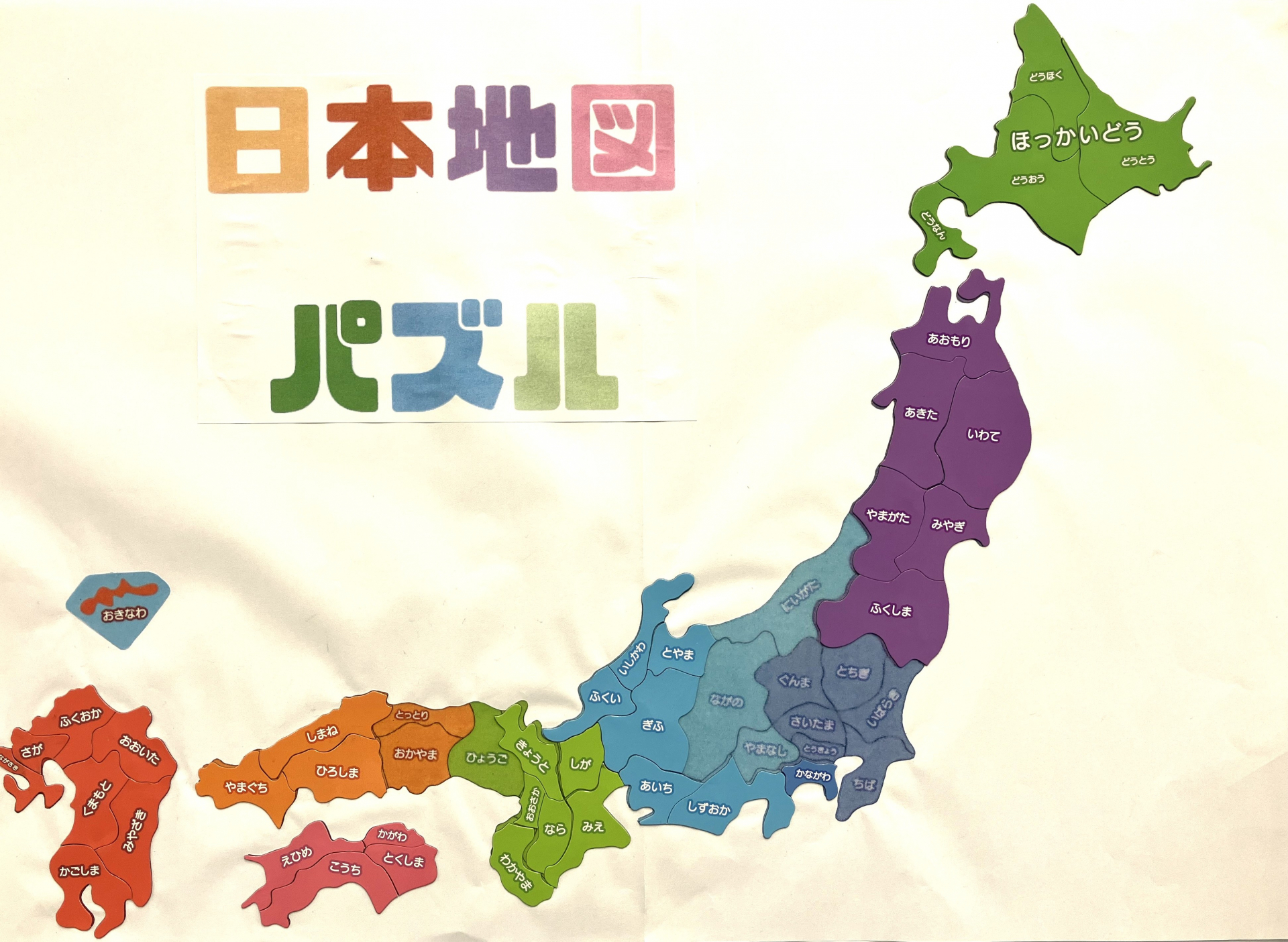少し前にマグネットの日本地図でパズルを作ったのを、やっとショートステイにお披露目いたしました