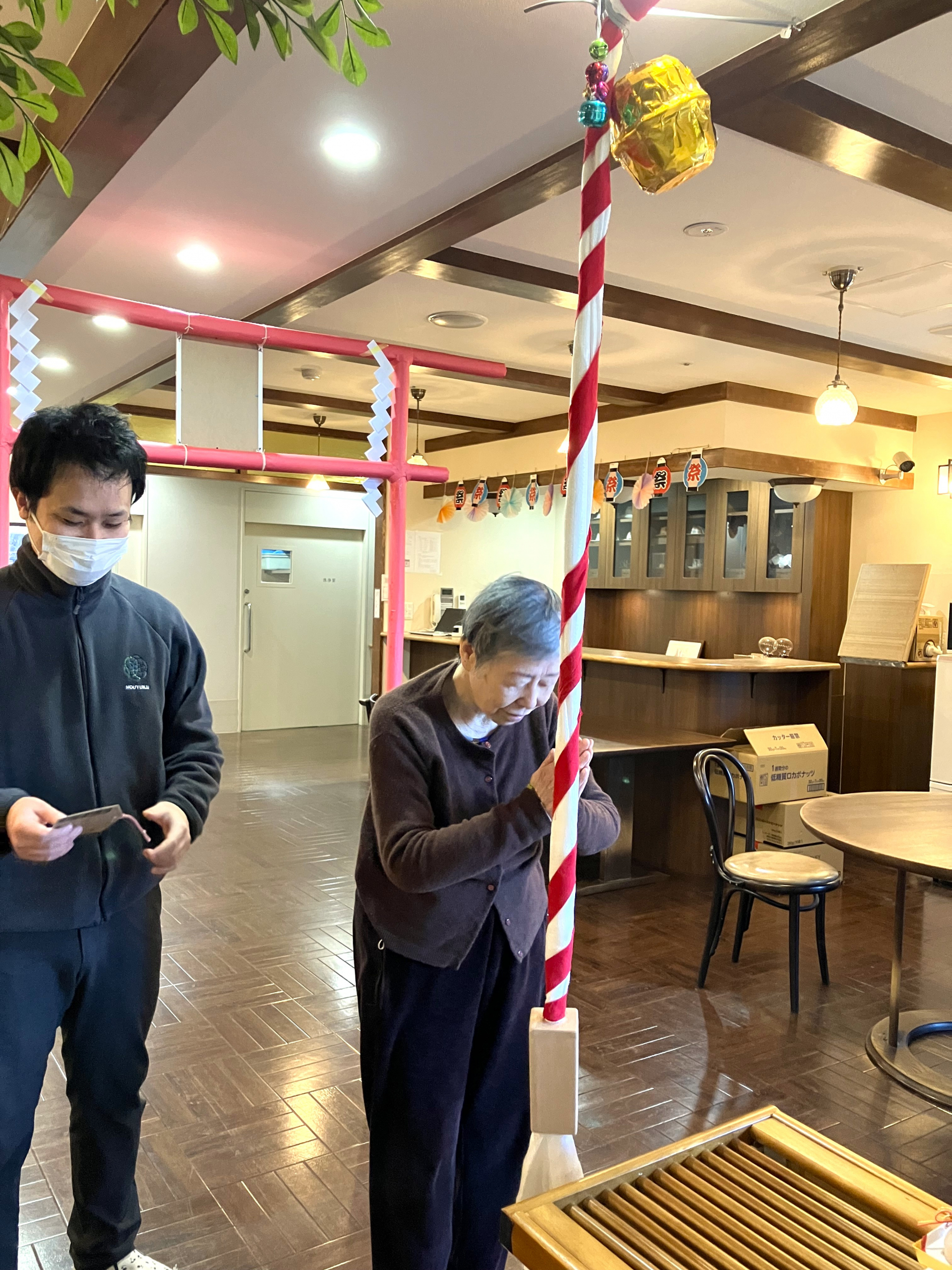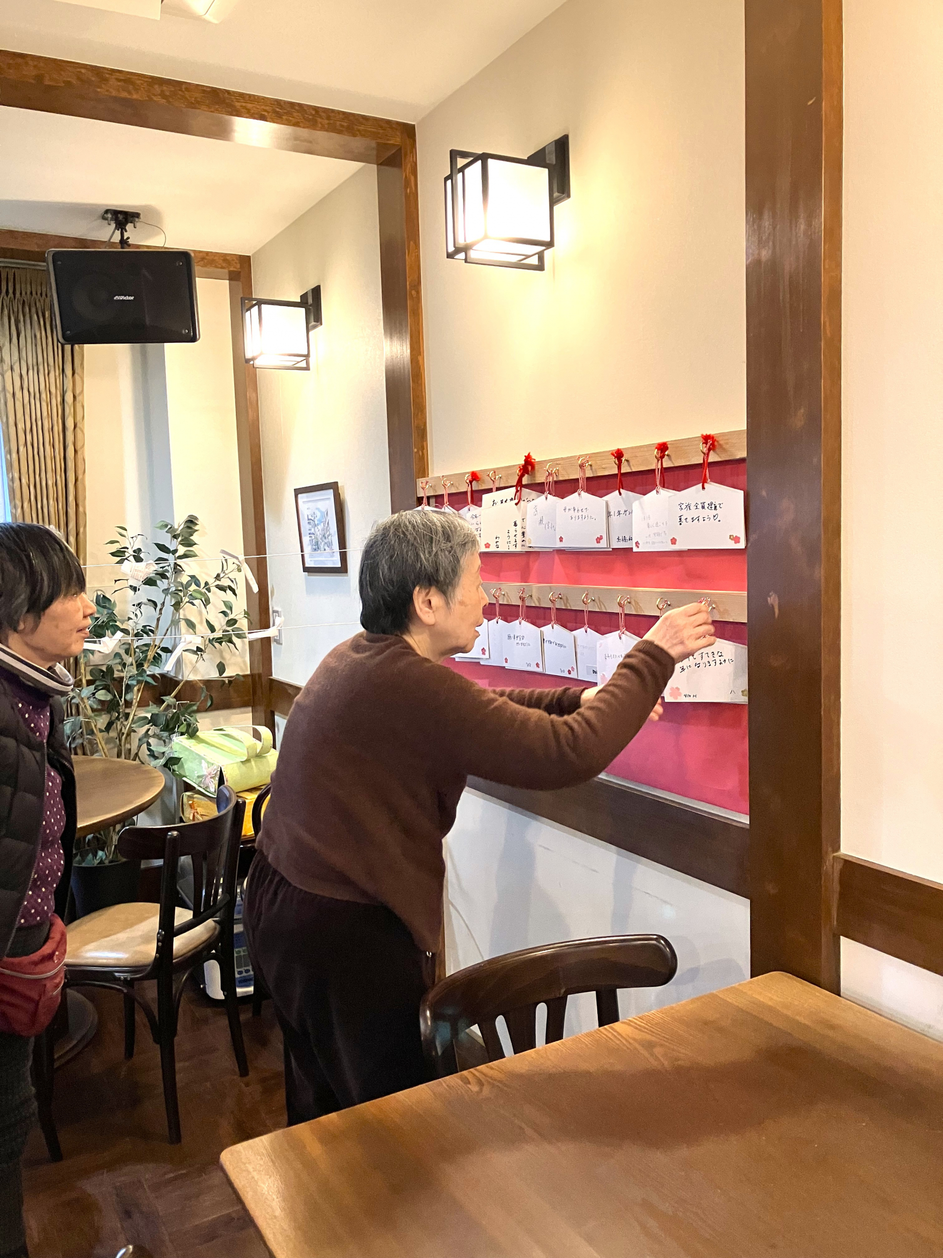 絵馬に願い事を書いて奉納されました。ちなみに、ご自身の名前を入居の方は部屋番号ですが