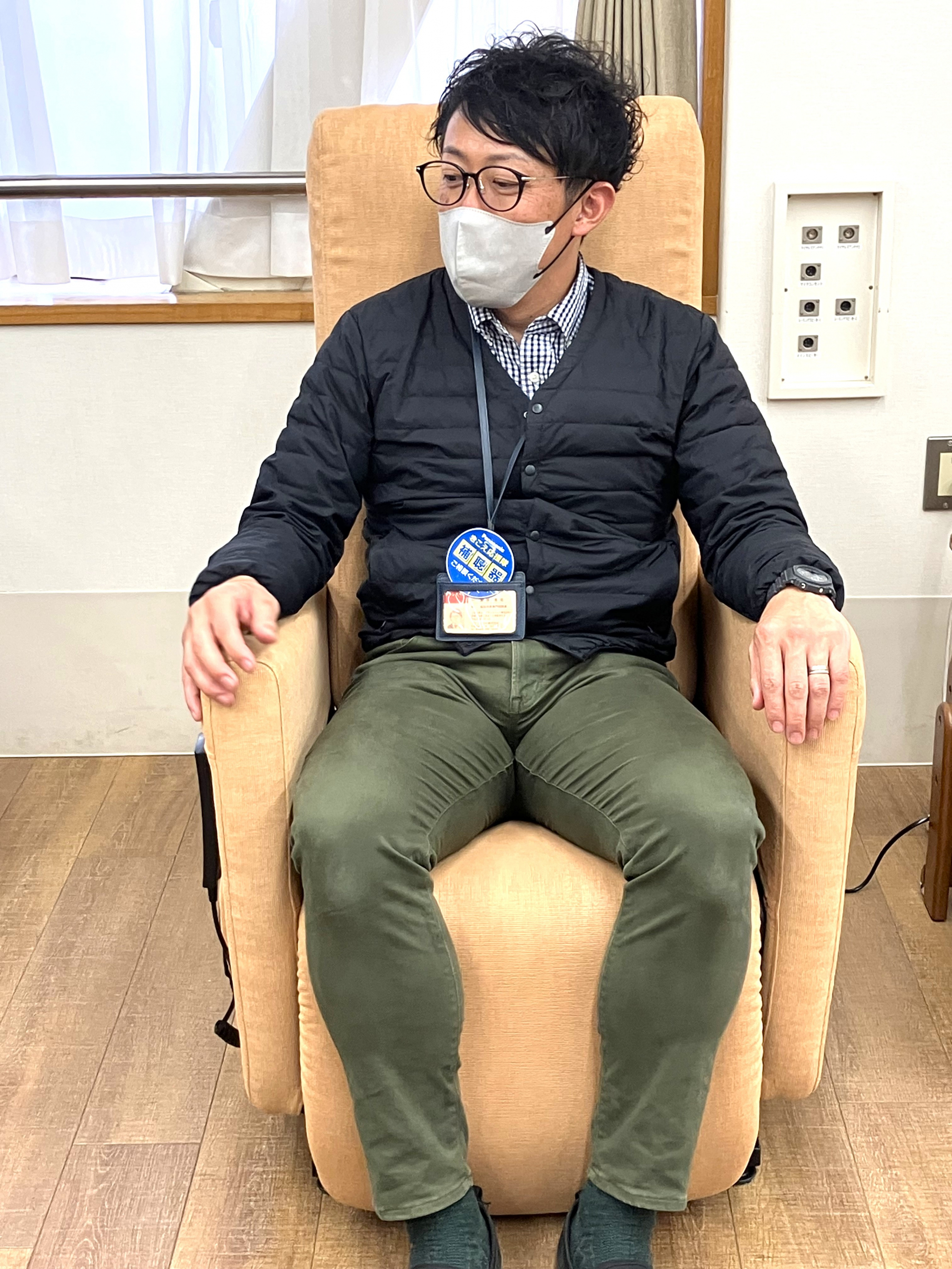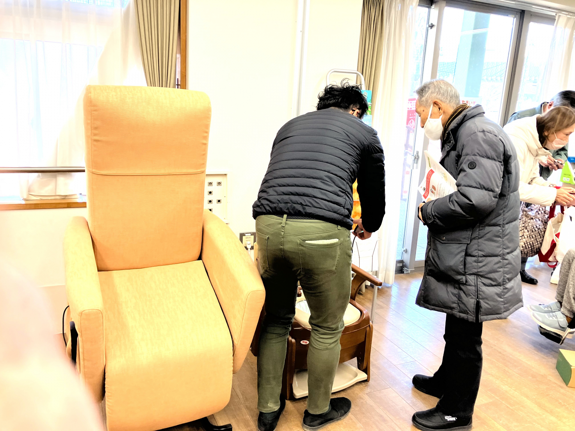お隣の椅子は、お尻が上がり立ち上がりをアシストしてくれるソファーです