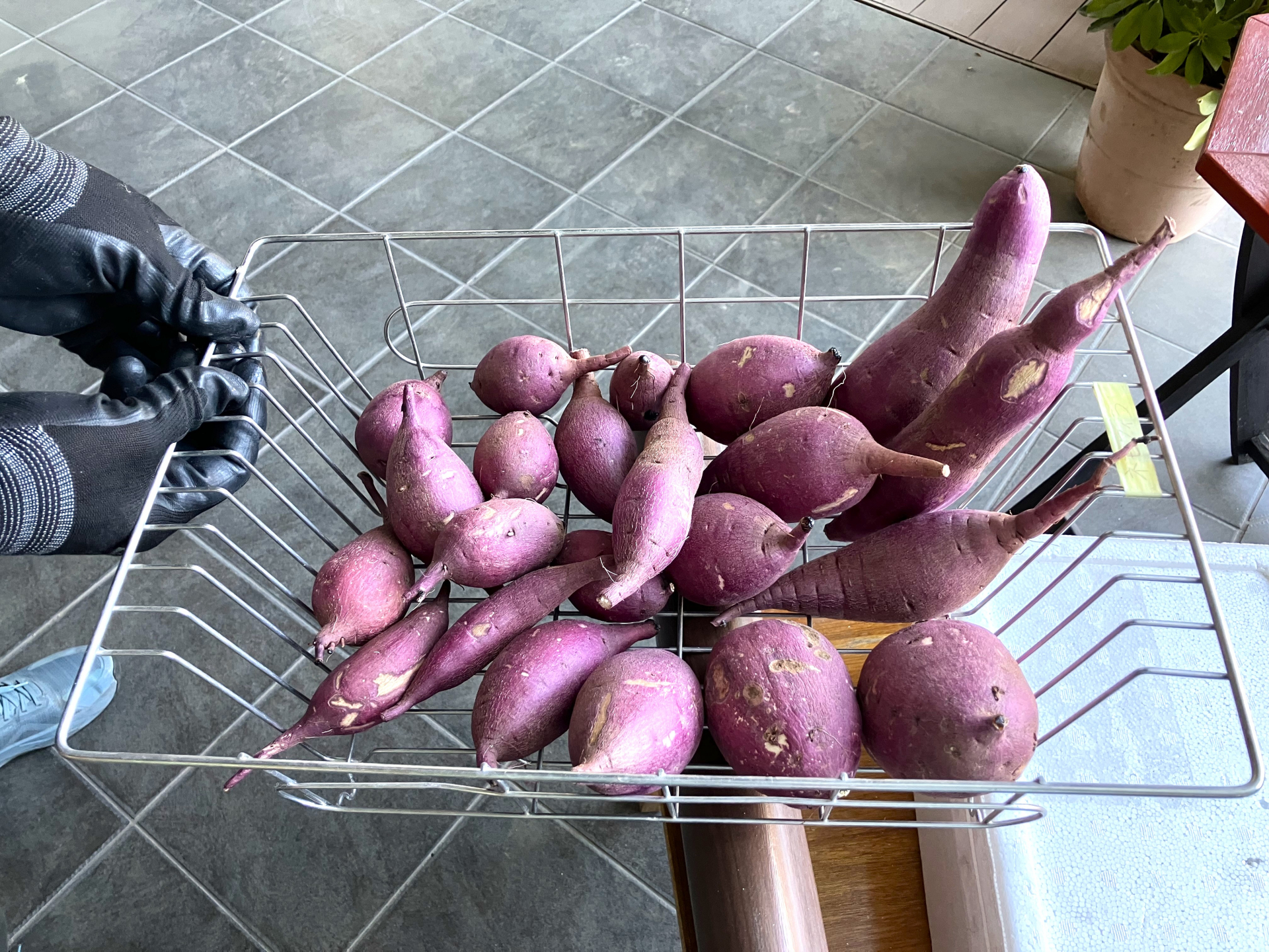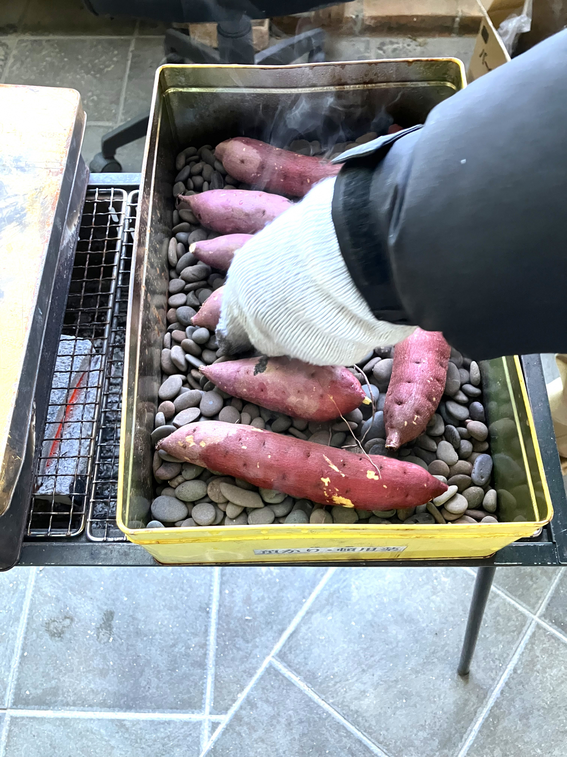 今回は予告で上げたお芋と杜松のお庭で秋に皆さんで収穫し、熟成しておいたサツマイモを焼かせて頂きました