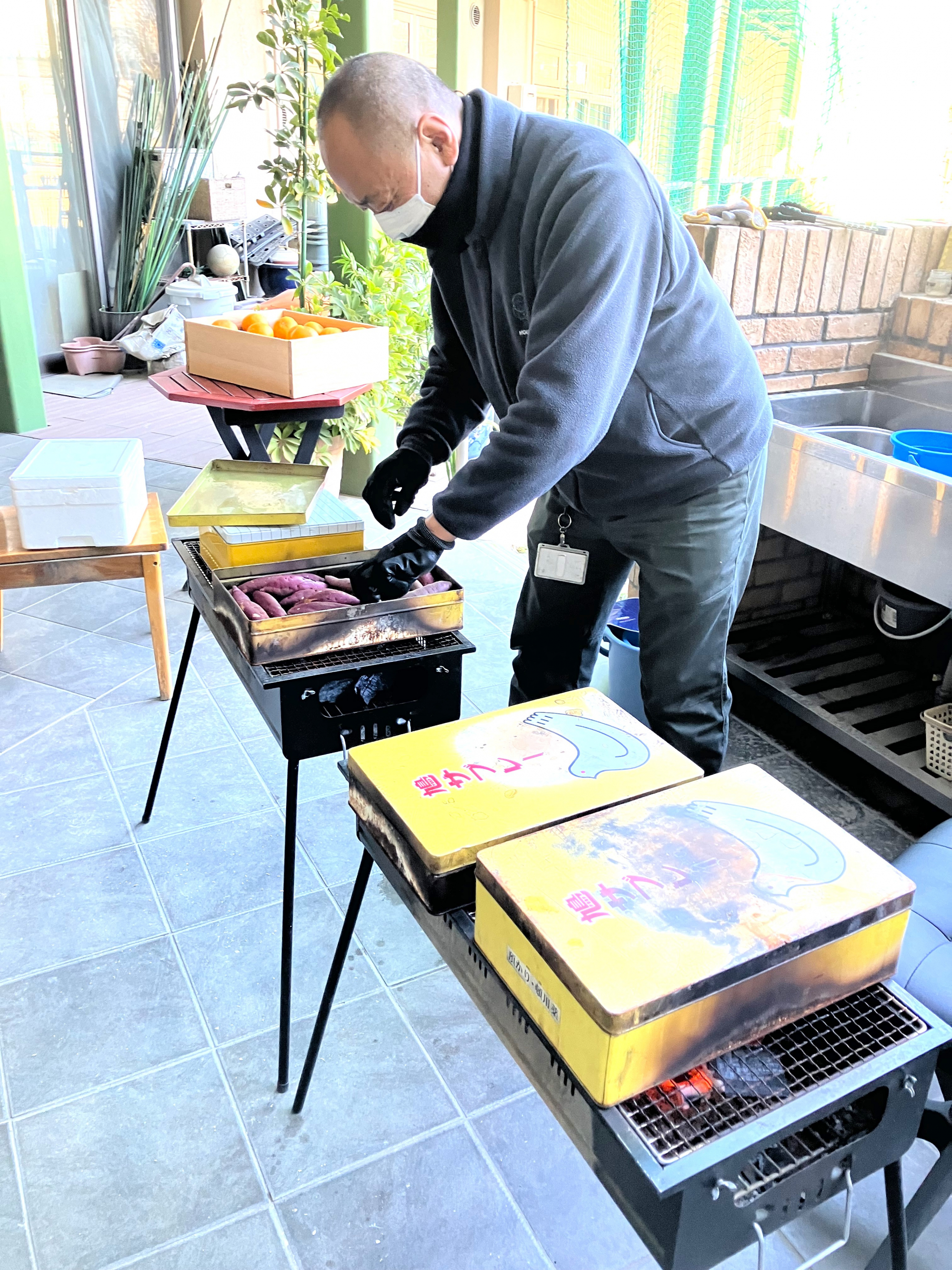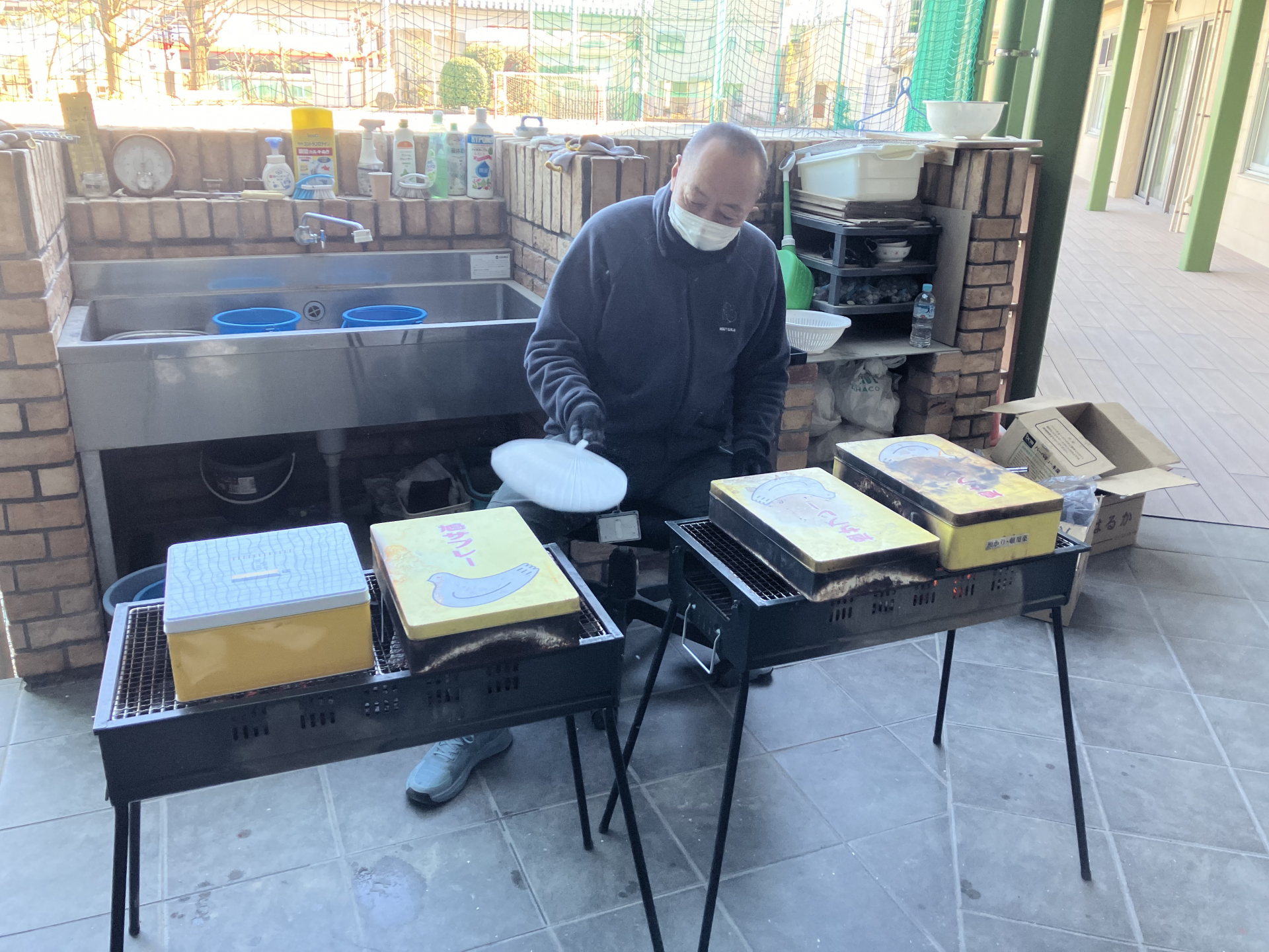 缶の中に石を引き詰めて、遠赤の灰で石焼です