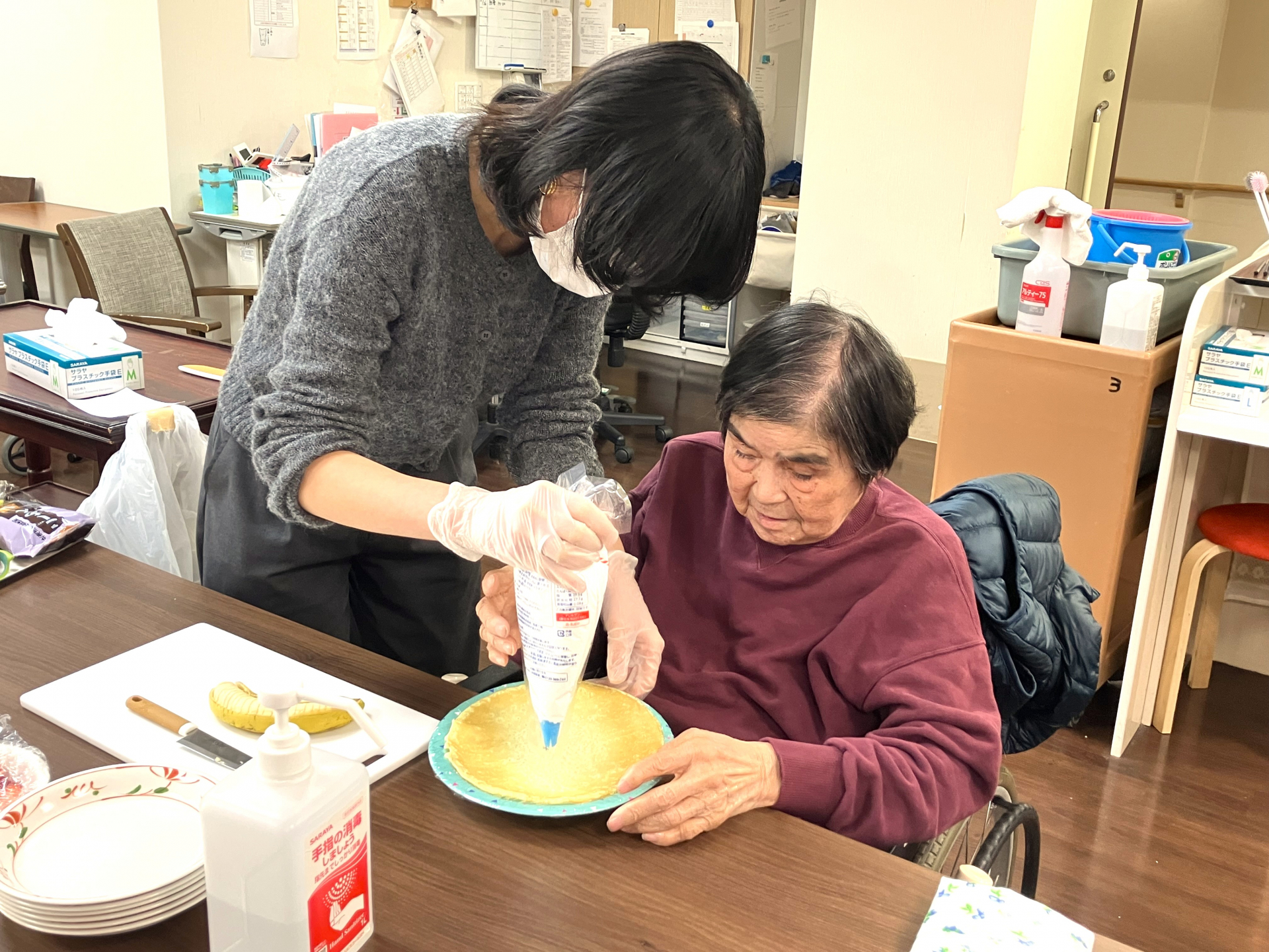今回、管理栄養士さんの提案でクレープ屋さんを行いました~![]()