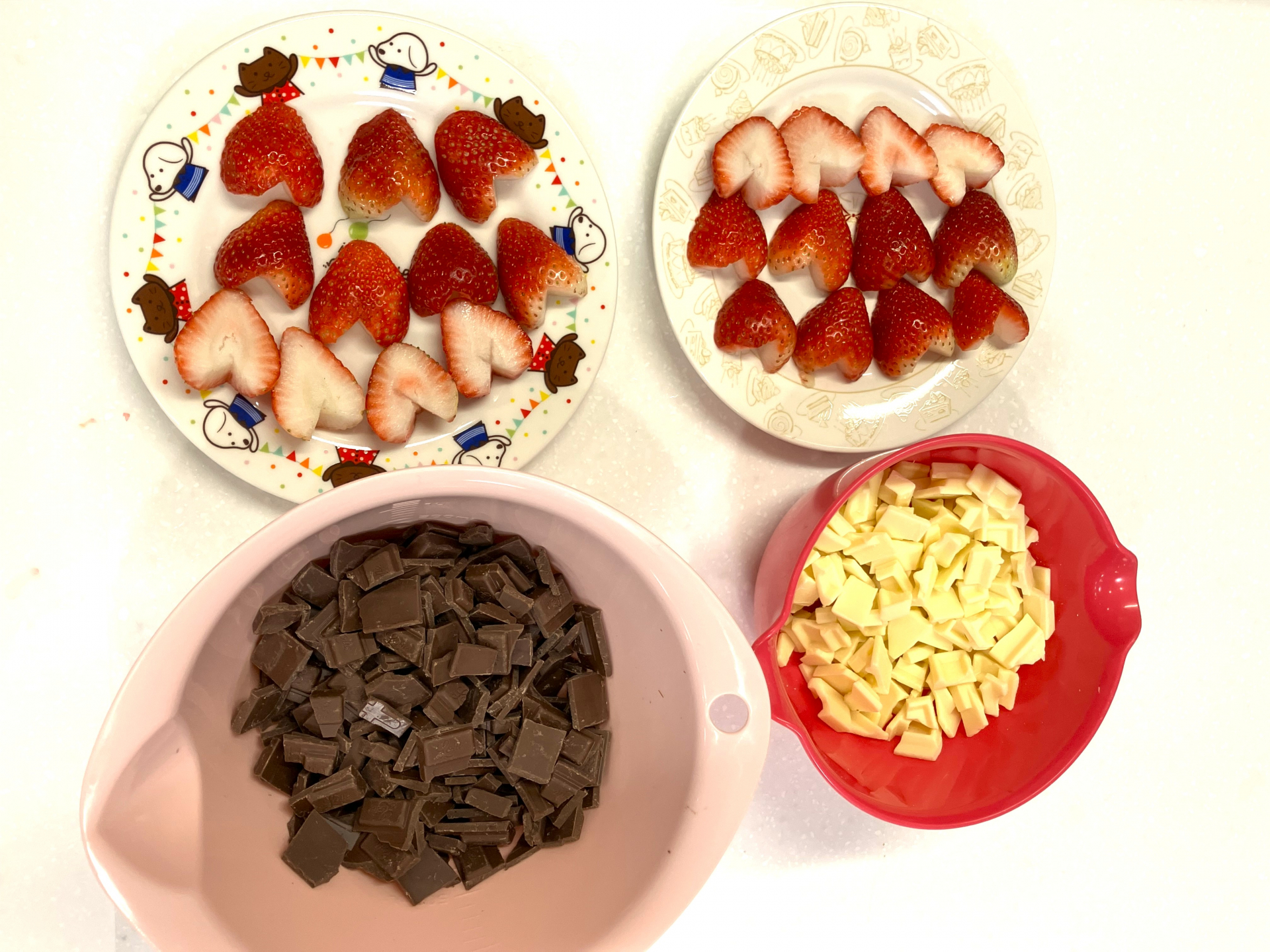 イチゴをかわいく、ハートにカットしています