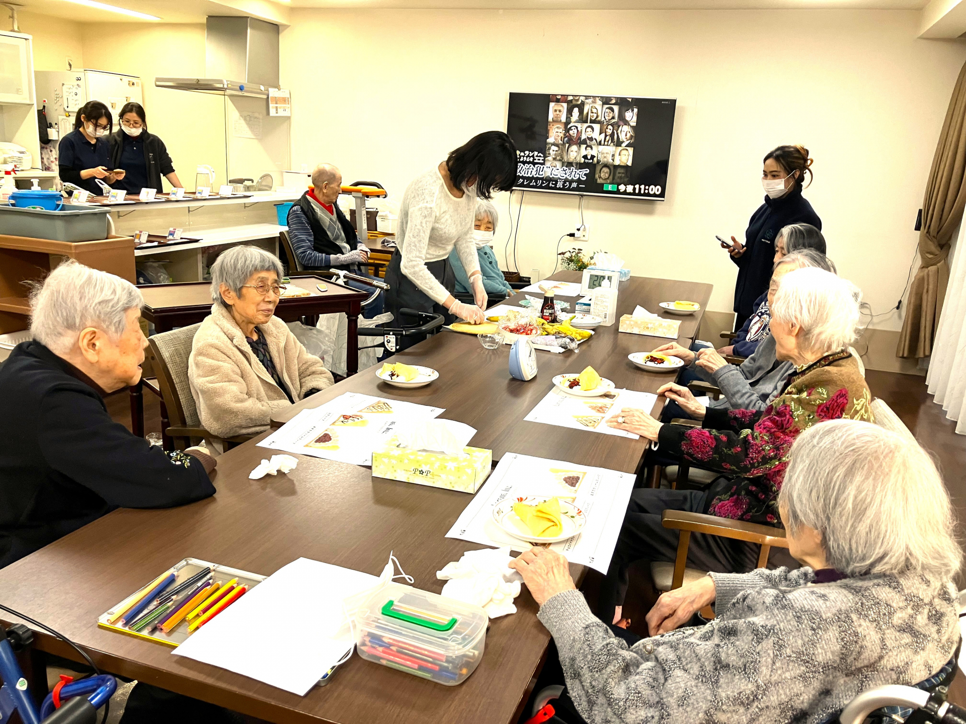 ショートステイさんは仲良しが多いので、みなさん全員が出来上がるのを待ってくれています