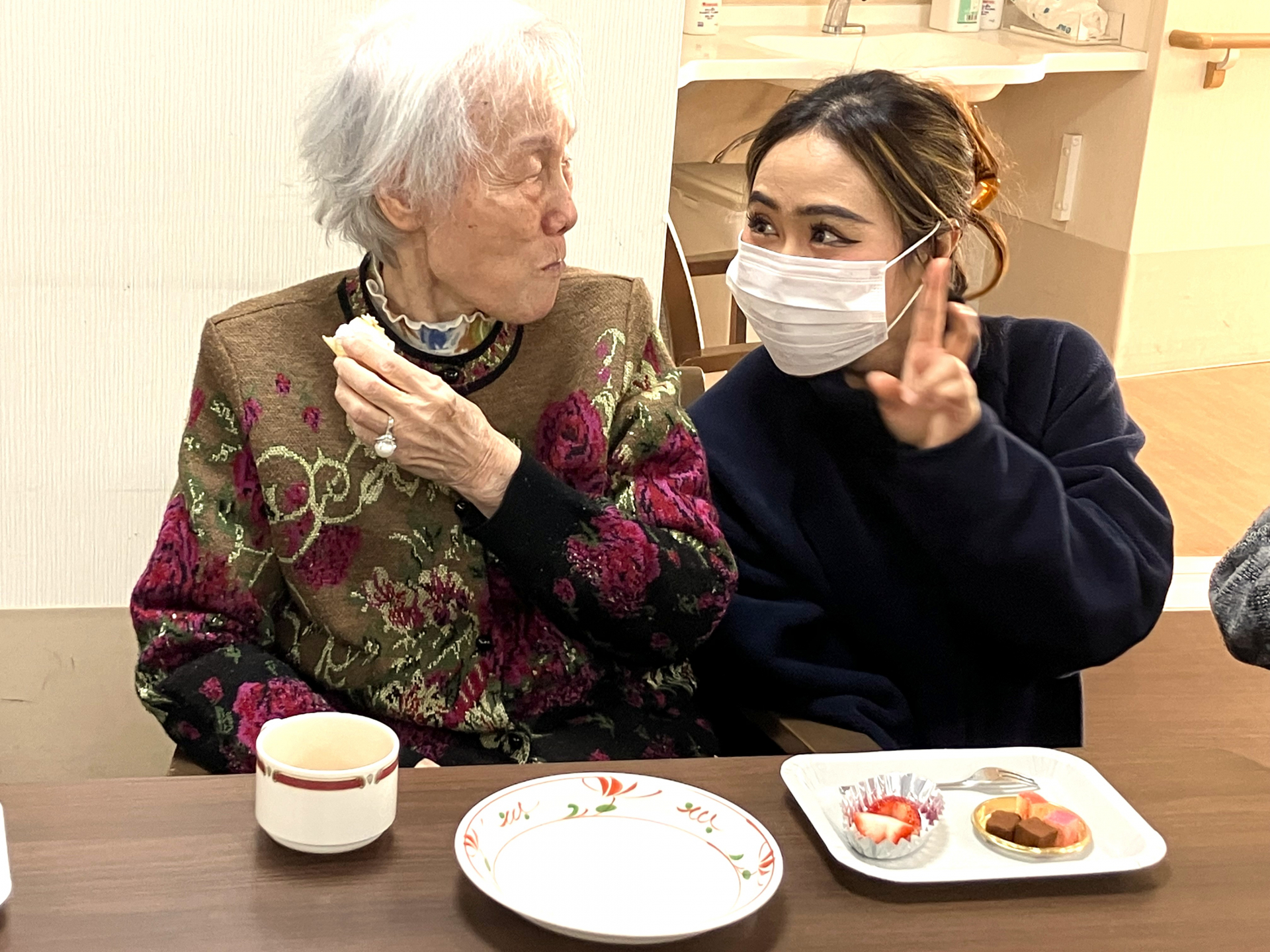 「はい!笑って笑って~」「やだ~もう、笑っちゃうじゃない」