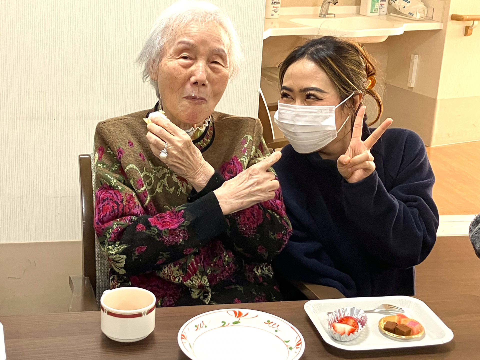 「美味しい顔、写真撮ってくれるって~一緒に撮りましょ」