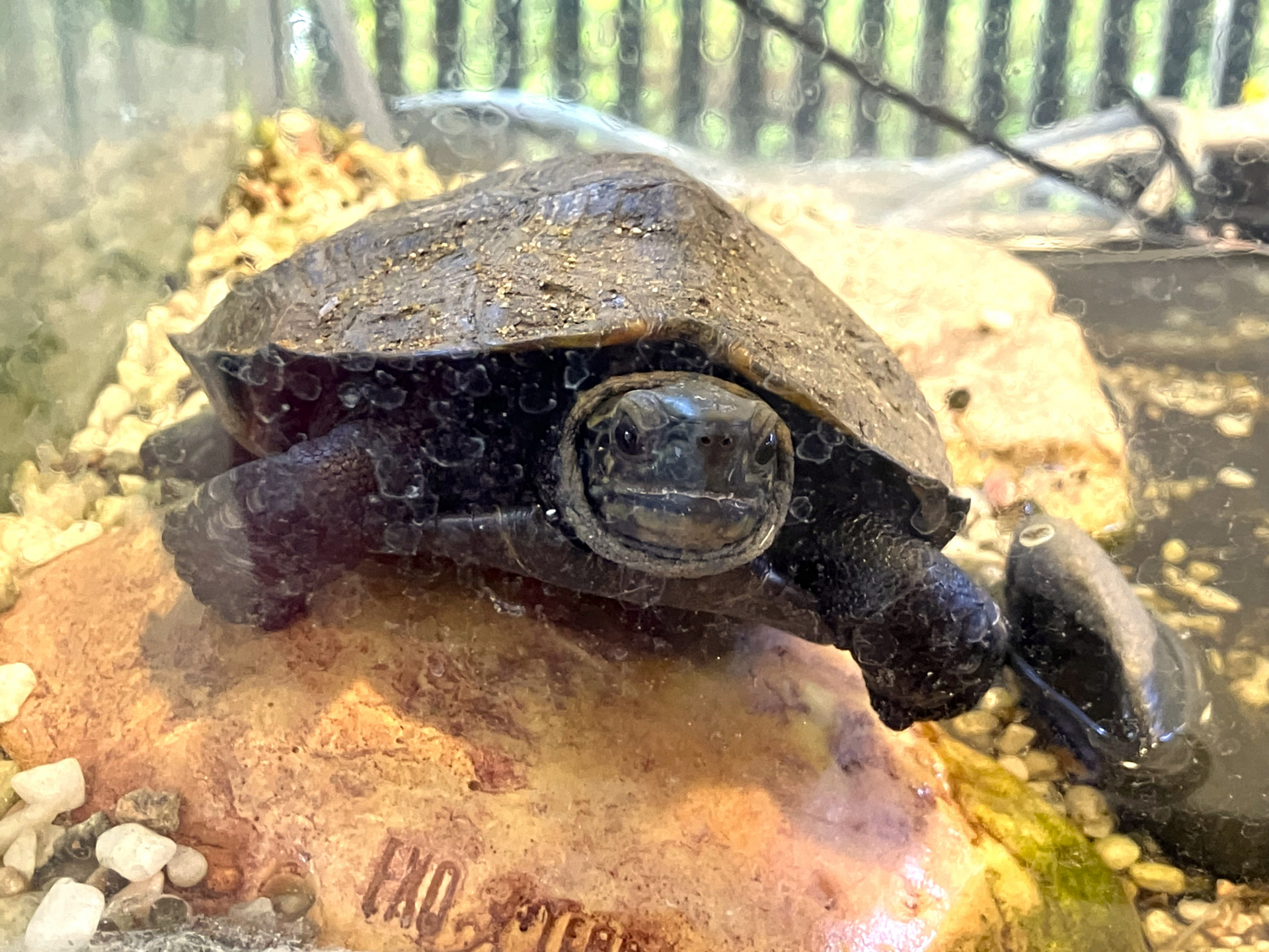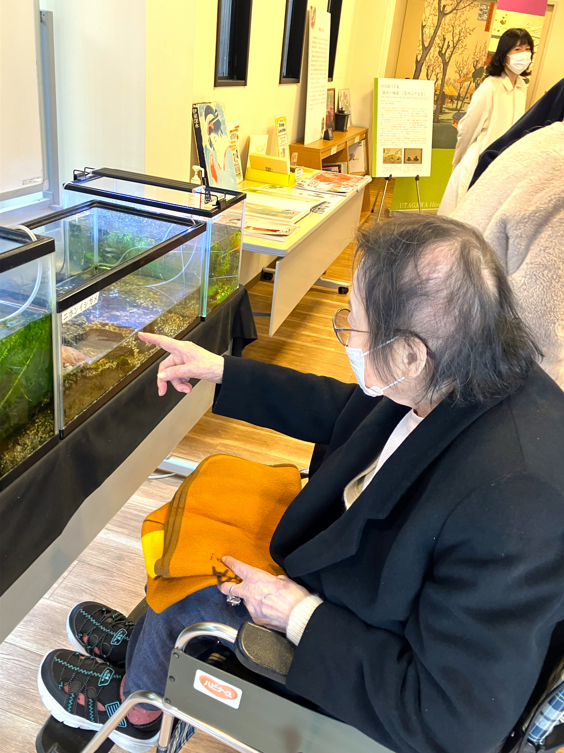 こんなカメがいましたよ~とベンチでくつろいでる利用者様にお見せすると
