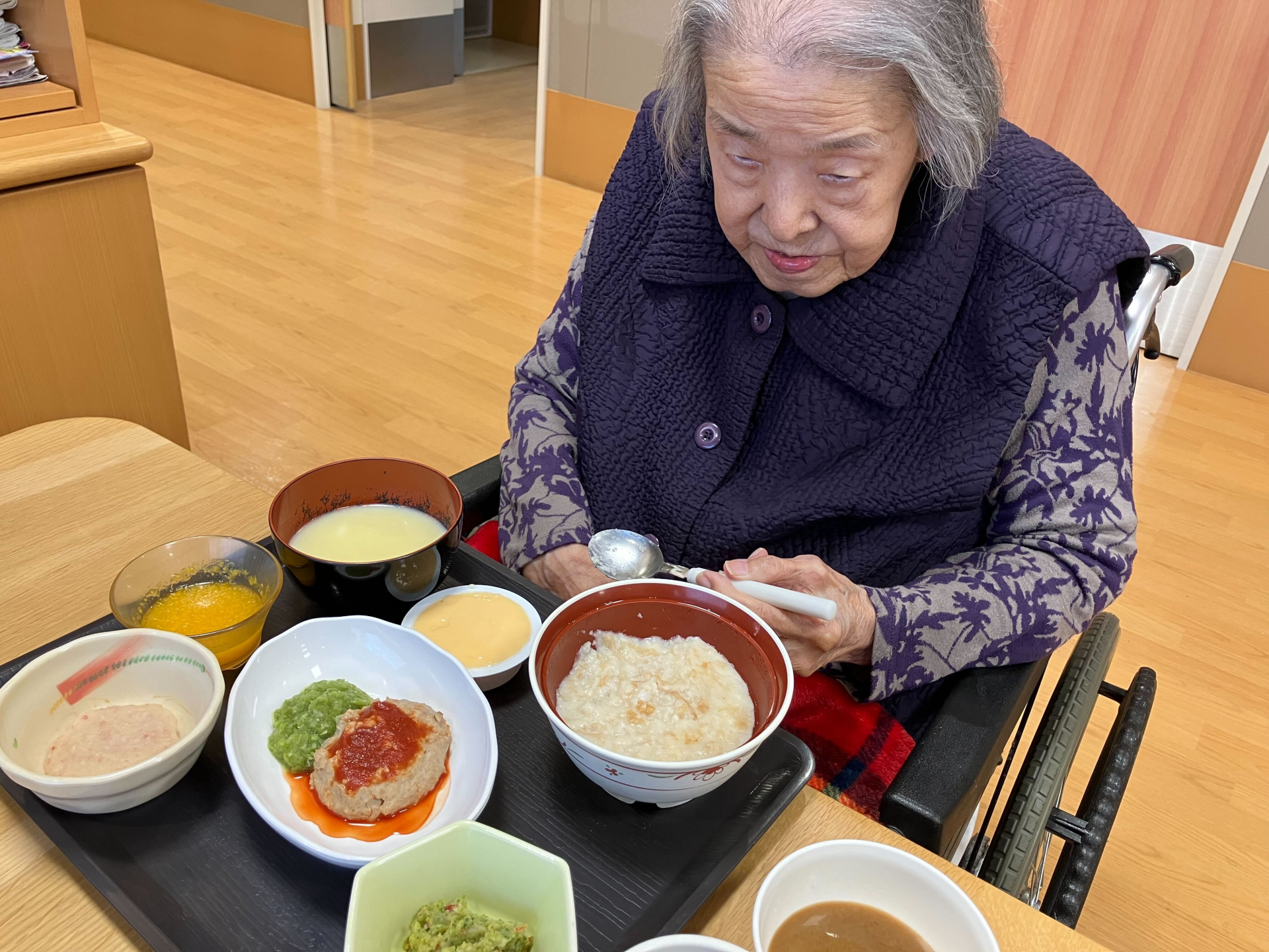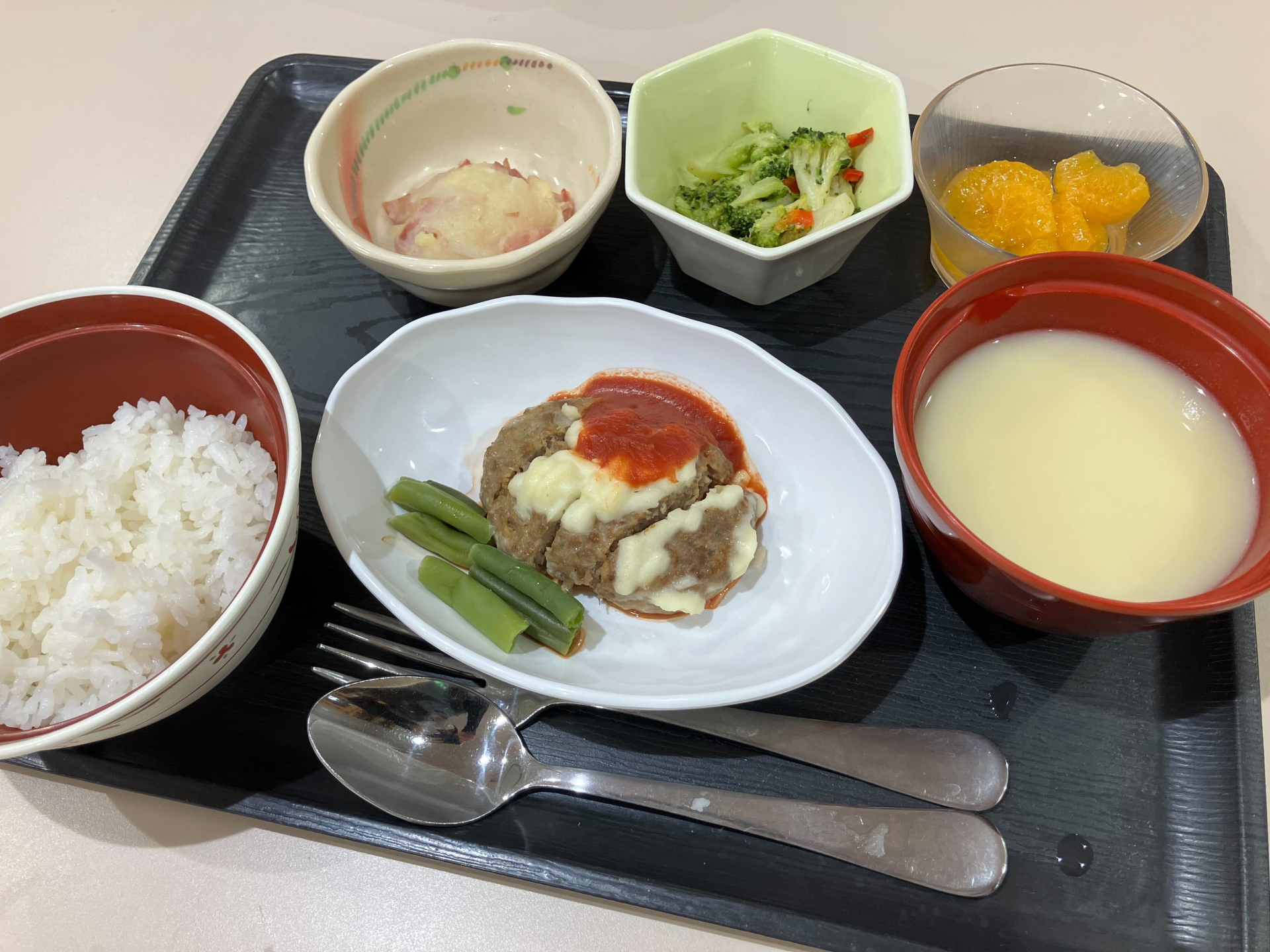 ご様子を伺うとハンバーグやフルーツなど、