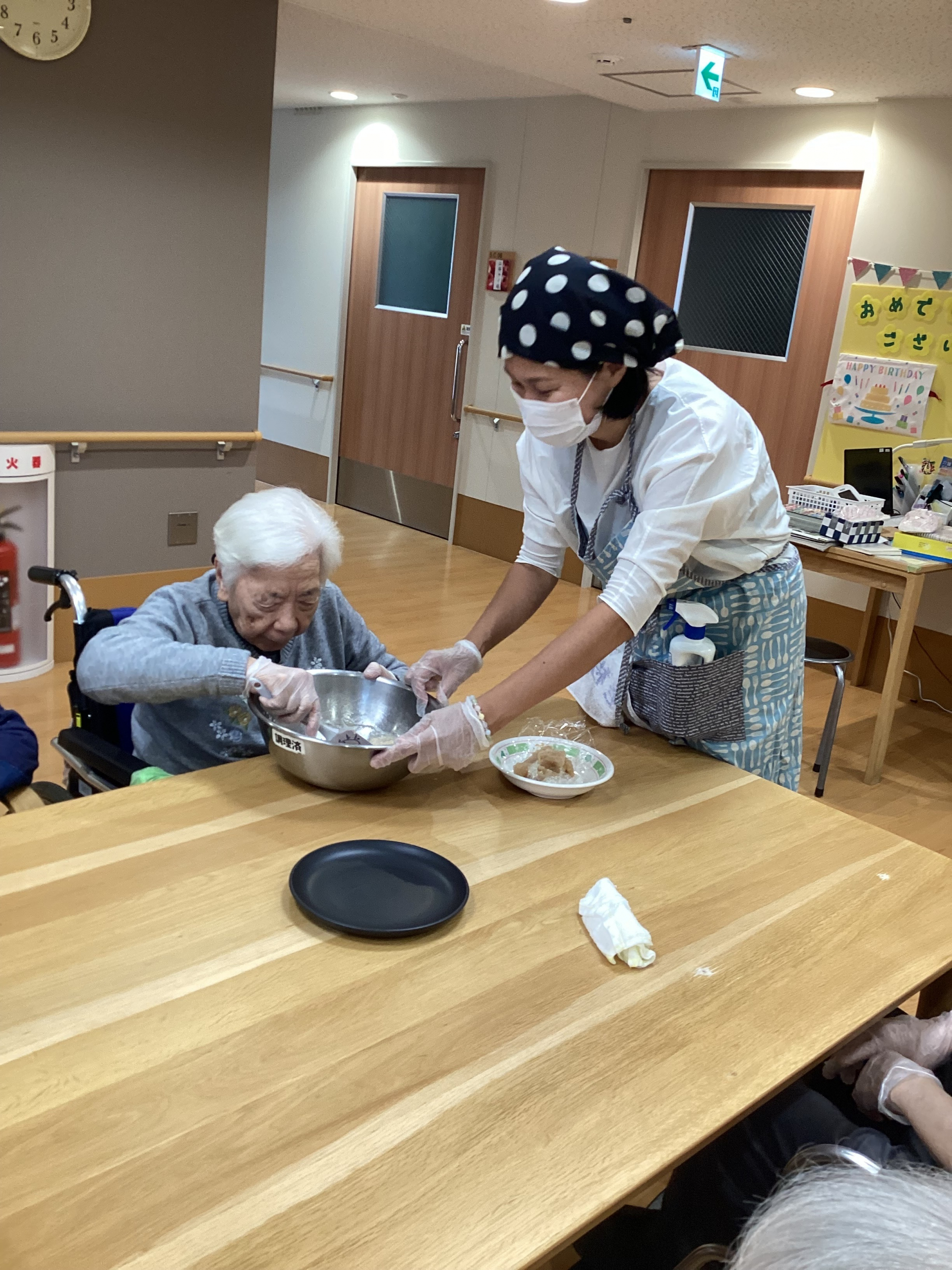 2025.11.15 活動報告 和菓子作り Tweet シェアする ご利用者様と和菓子作りを行いました☆ 御利用者様が集中して楽しんでいる様子でした。 完成後、ご利用者様と一緒に和菓子を試食‼ 皆さん美味しいと喜んでくださいました。 介護3課 阿部 前の記事 2025.11.16 活動報告 3Cユニットにもサンタがやってきました🎅 次の記事 2025.11.13 活動報告 喀痰吸引研修2日目 一覧へ戻る