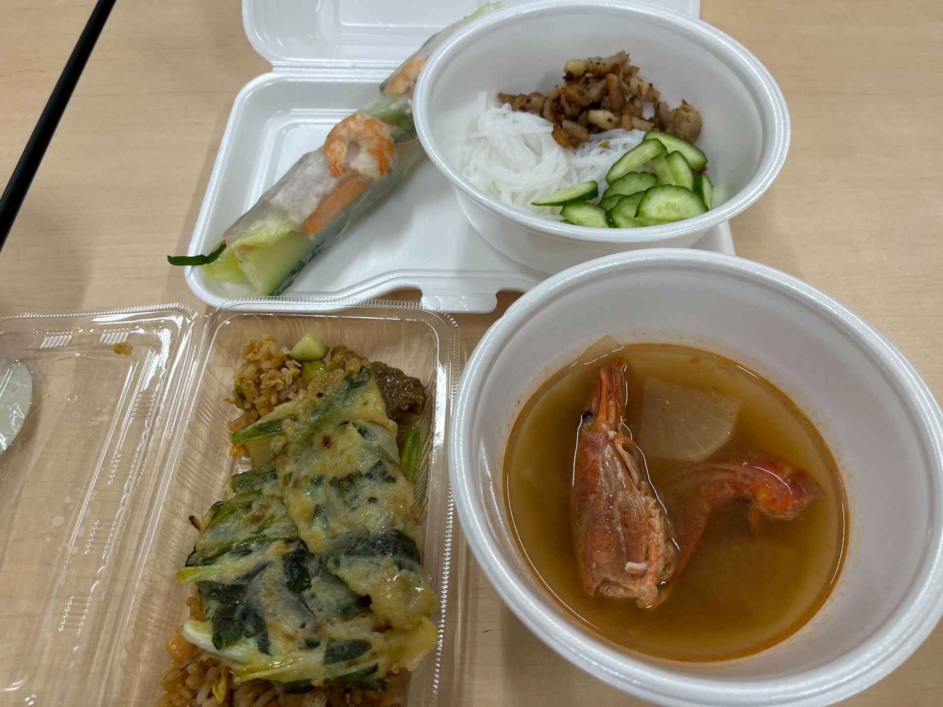 個人的には、「Rendang & Nasi Goreng」という名前のインドネシアのチャーハンが美味しかったです!(盛り付ける場所がなく、チヂミを上に乗せてしまいましたが、写真左下のチヂミの下に映っております、、)牛肉がほろほろで、かつ、少しスパイスが効いていて、何杯でも食べたくなる味でした!