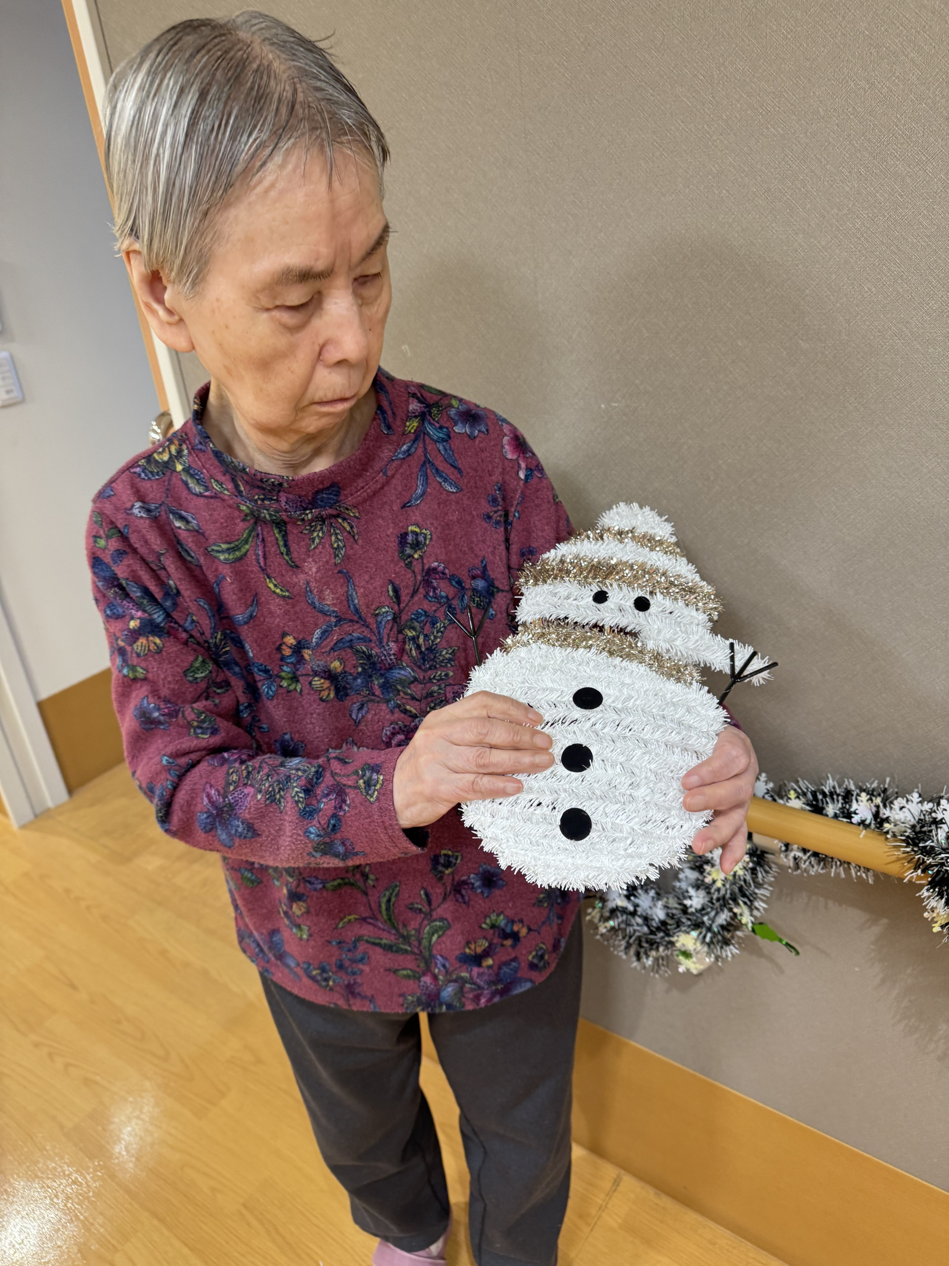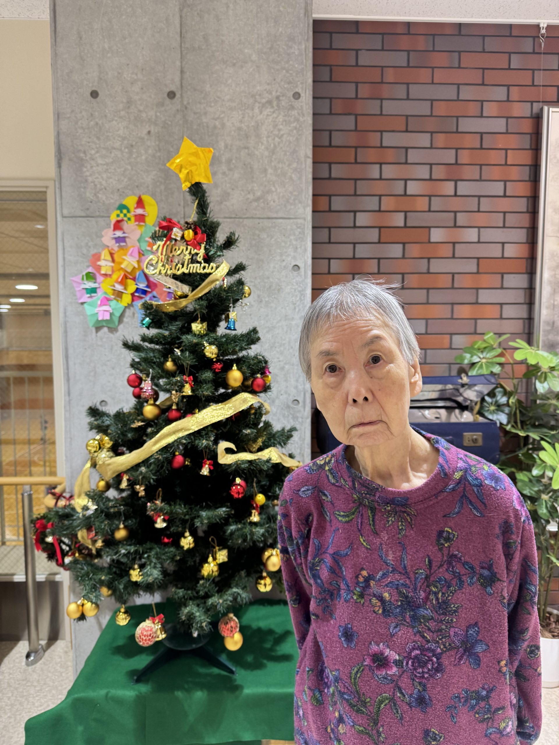 施設内とユニット内にも美しいクリスマスツリーや華やかな飾り付けで彩られ、