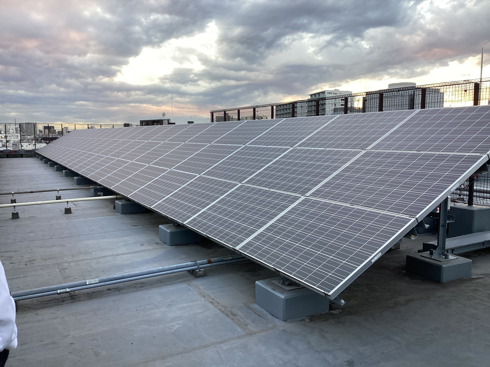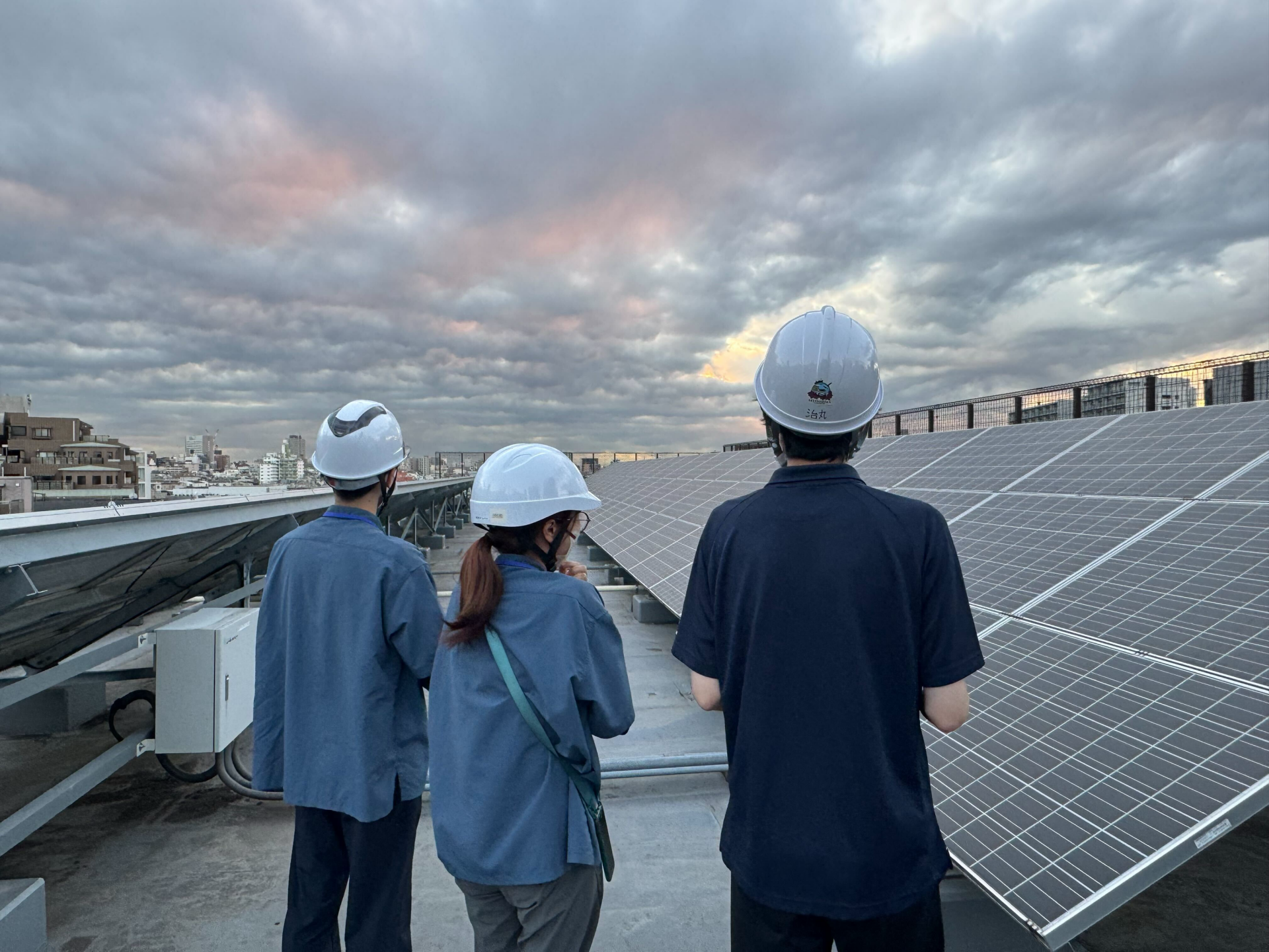最後に、屋上に設置された太陽光パネルを見に行きました!つばめの里の屋上全体を活用して、太陽光発電が行われており、屋上の有効活用をきちんとできていると学ぶことができました♪