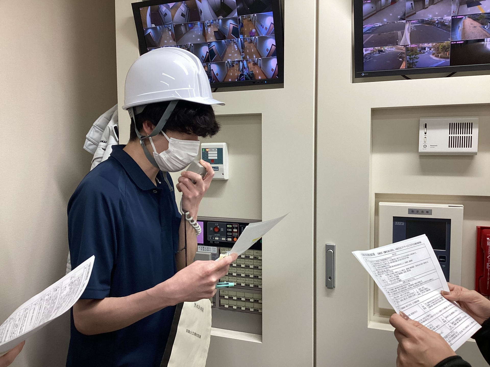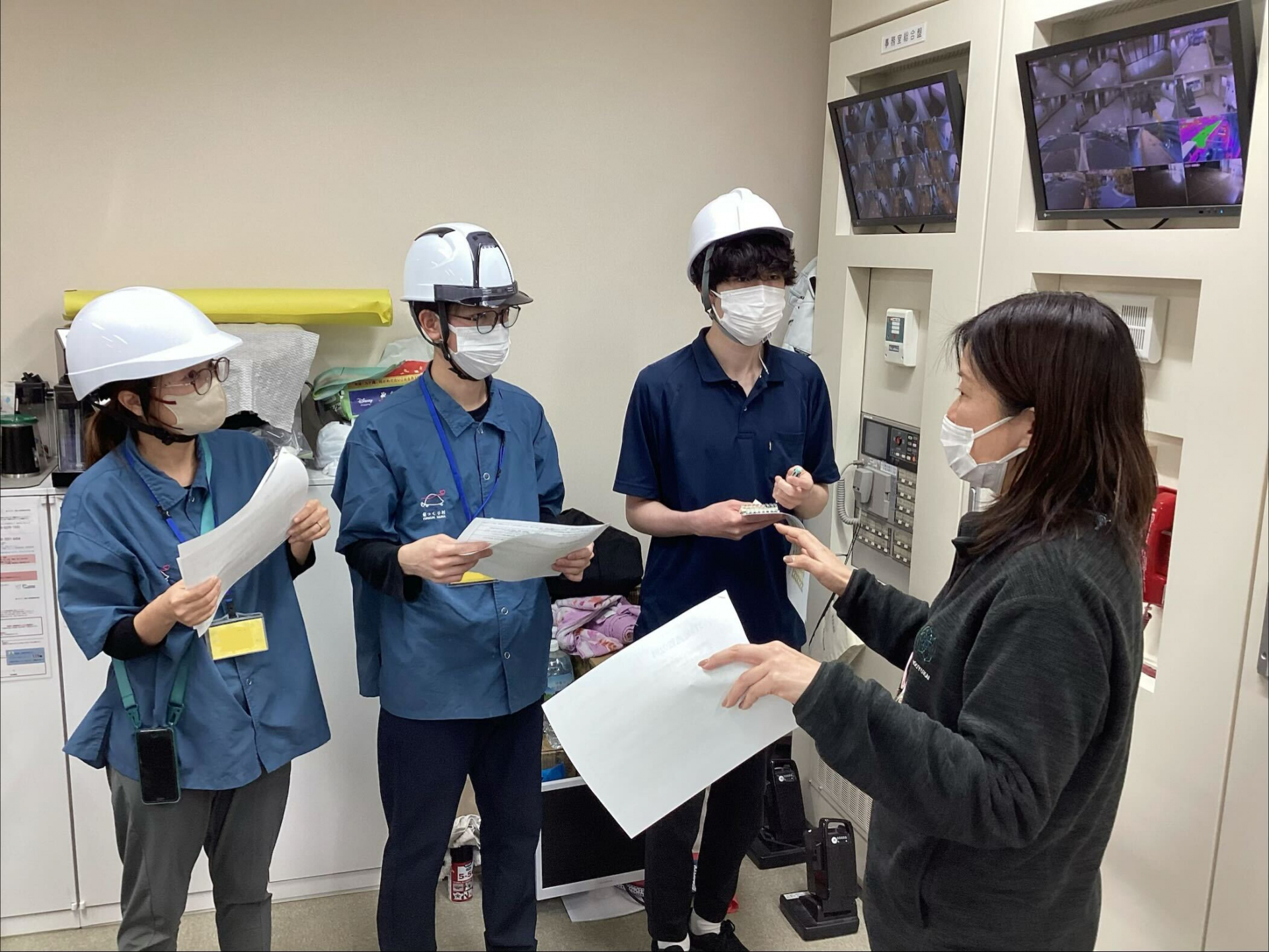 つばめの里の事務所には、防災システムが備わっており、ボタン1つで消防まで連絡が届いたり、館内一斉放送があるため、各フロアに素早く情報を伝達したりすることができます。今回、館内一斉放送の放送箇所を事務所のみに設置して、放送体験を行いました!
