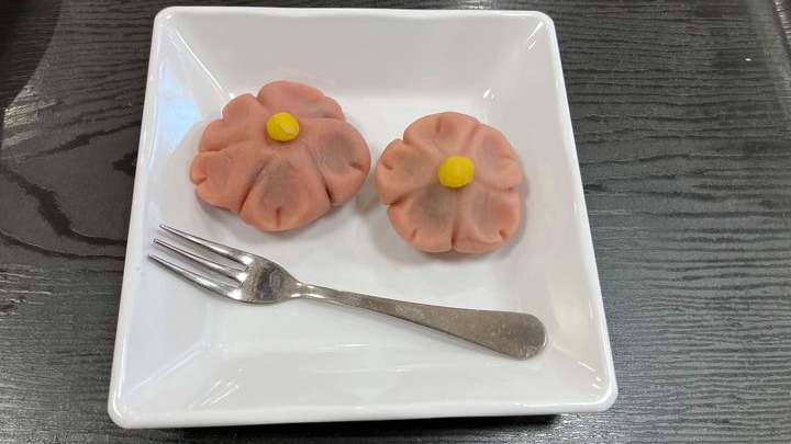 そしてそして和菓子づくりでは、練り切り桜を作成しました!!