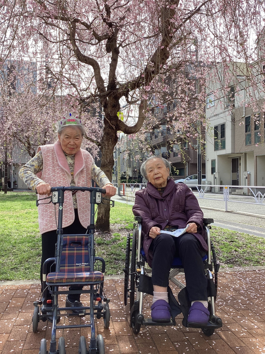 桜が満開となり「綺麗ですよね」と笑顔がみられました。