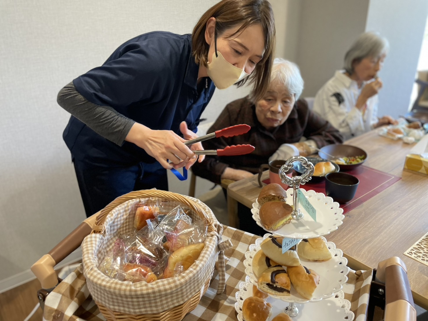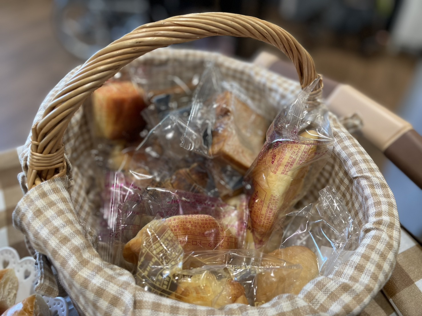 なんと!10種類以上のパンがずらりと並び、本日は食べ放題!ご利用者の皆さんからは「すみません!パンおかわりっ!」の声が飛び交い、