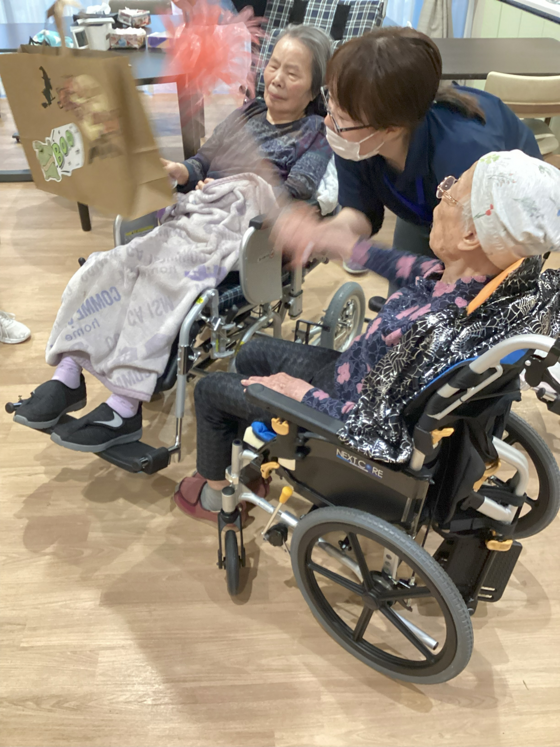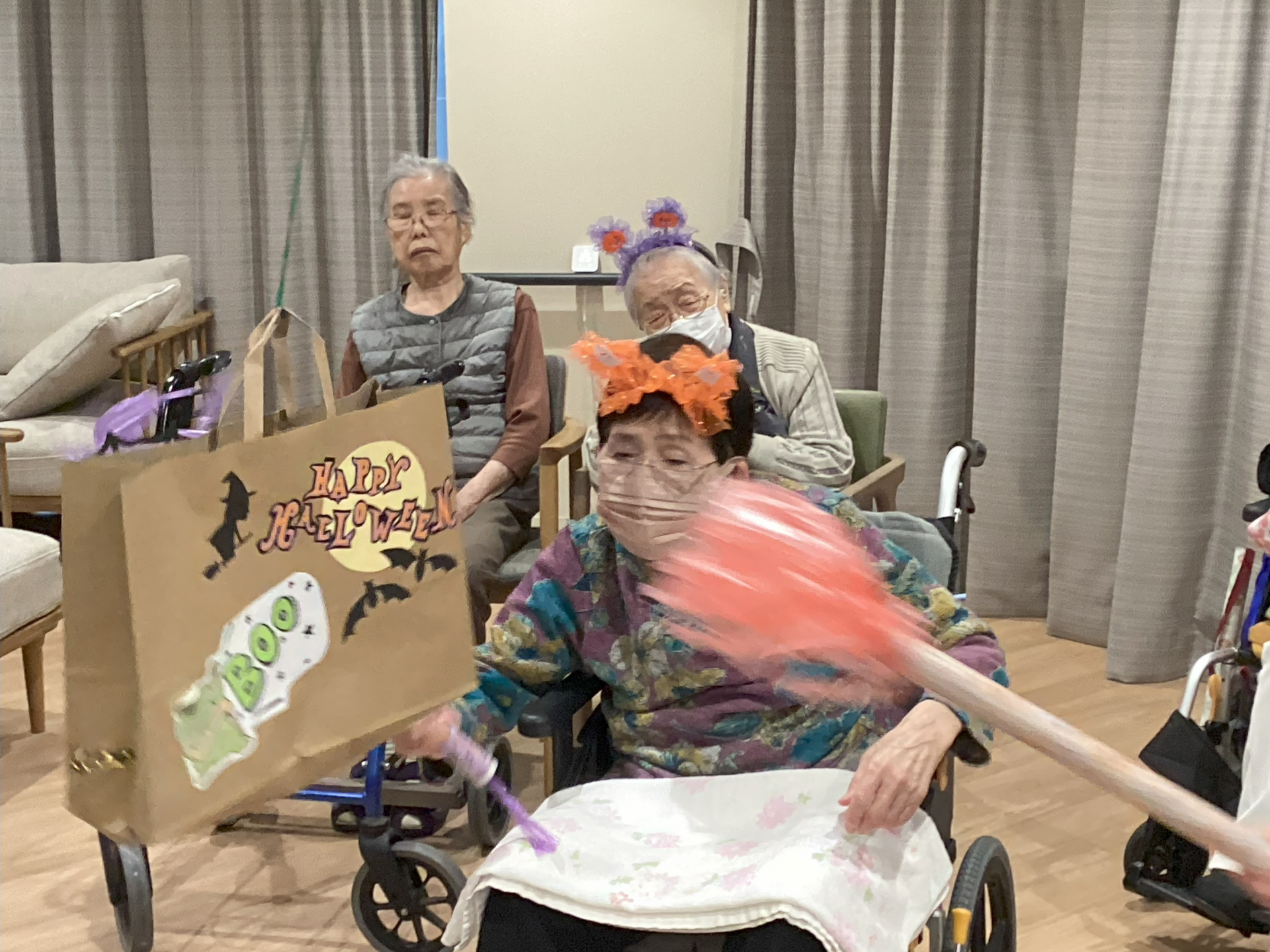 10月31日、ユニット内のハロウィン行事として、ピニャータのレクリエーションを行いました!