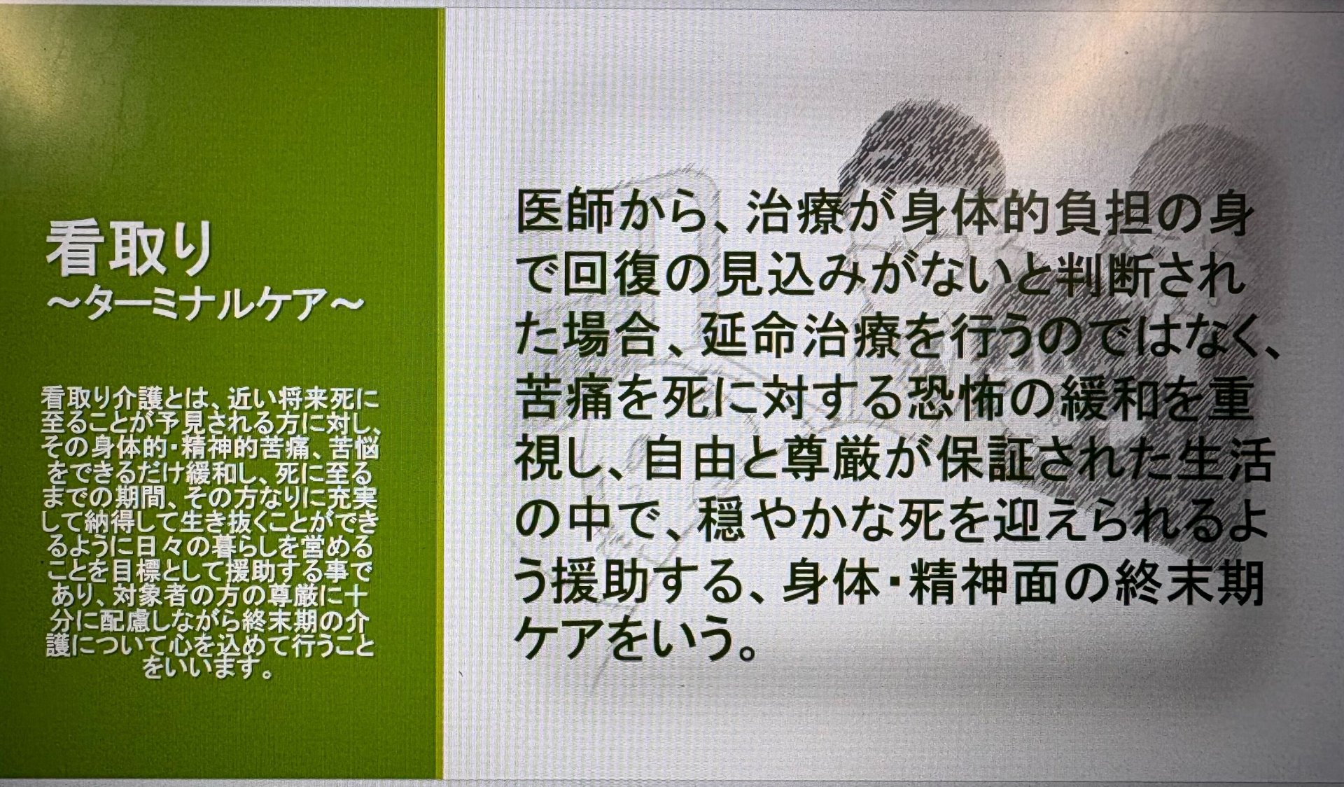弦巻の家の研修内容の更新を行うこととなり、再度改めて『お看取り』の伝え方を考えました。