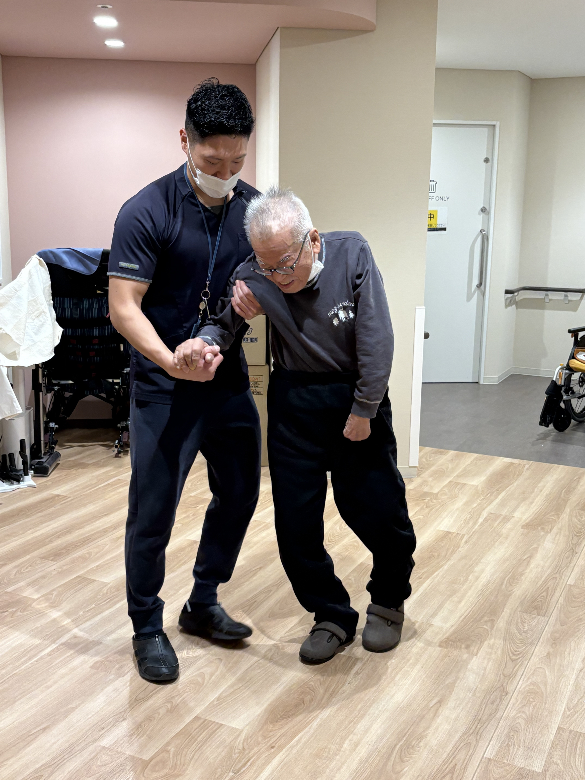 S様は、入居時は歩行は難しいかもしれない・・・と、思われていましたが、介助にて歩行ができるようになりました。