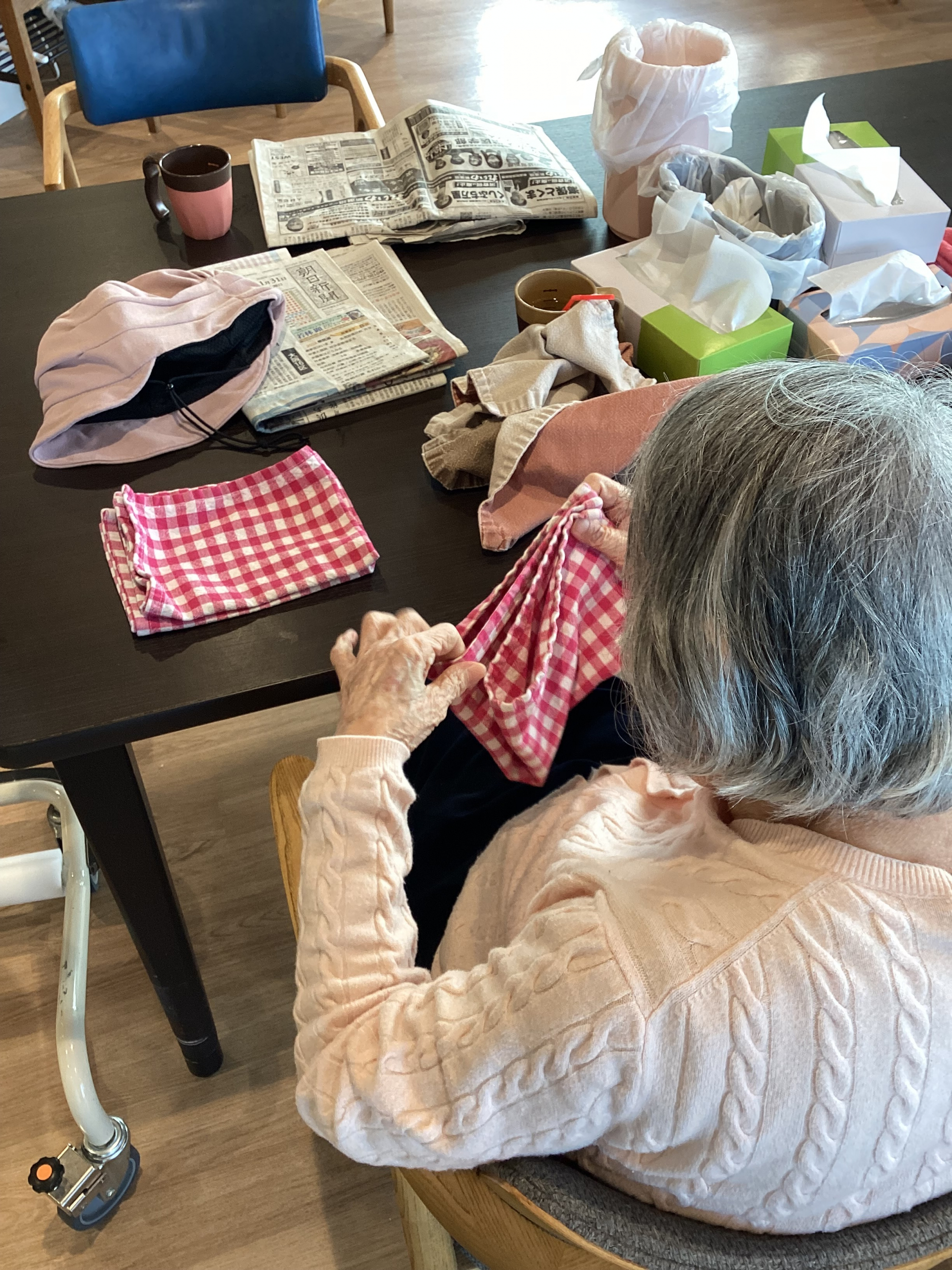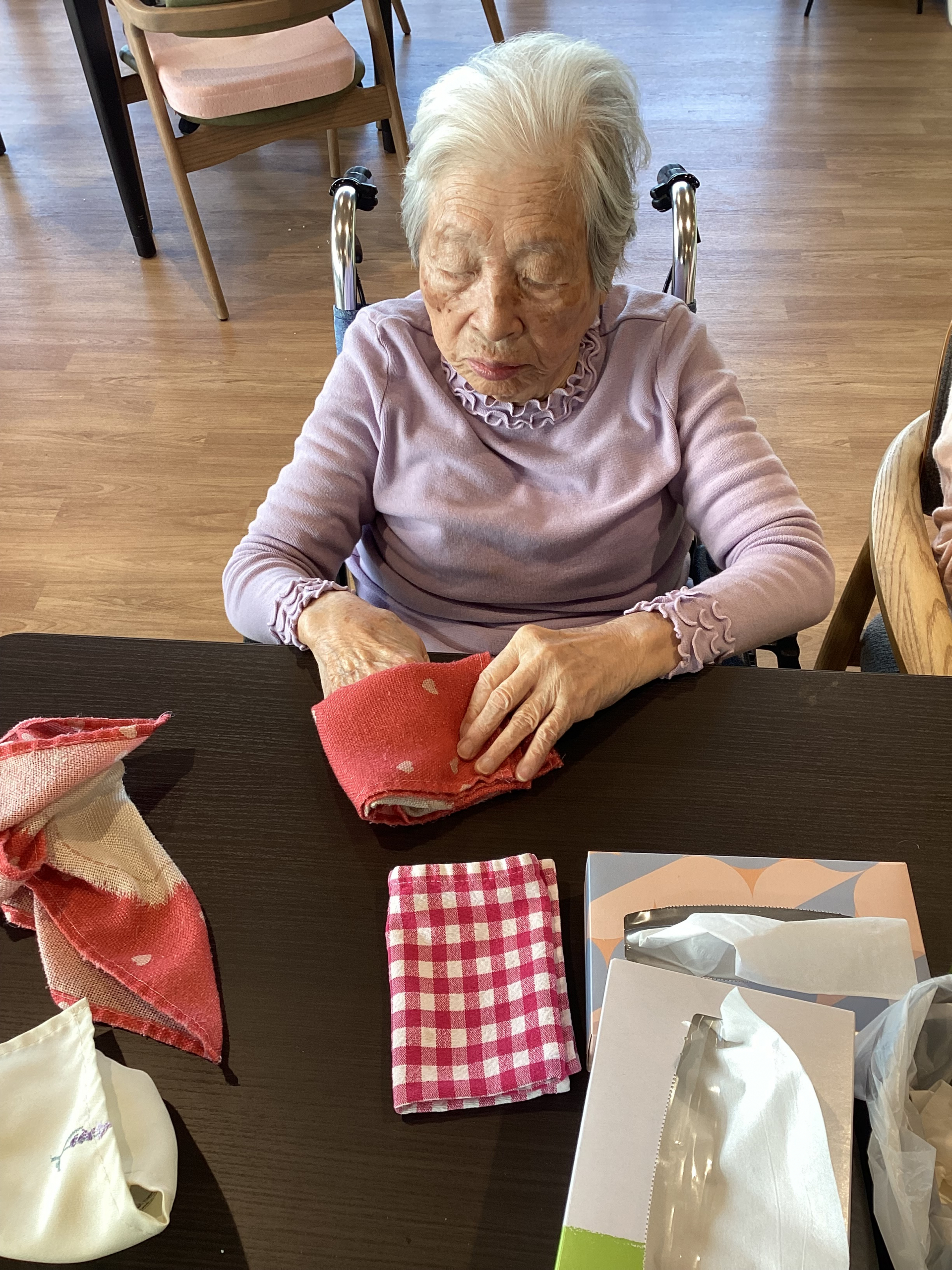 本日は入居者の皆様にお手伝い頂き、洗濯物を畳んで頂きました。
