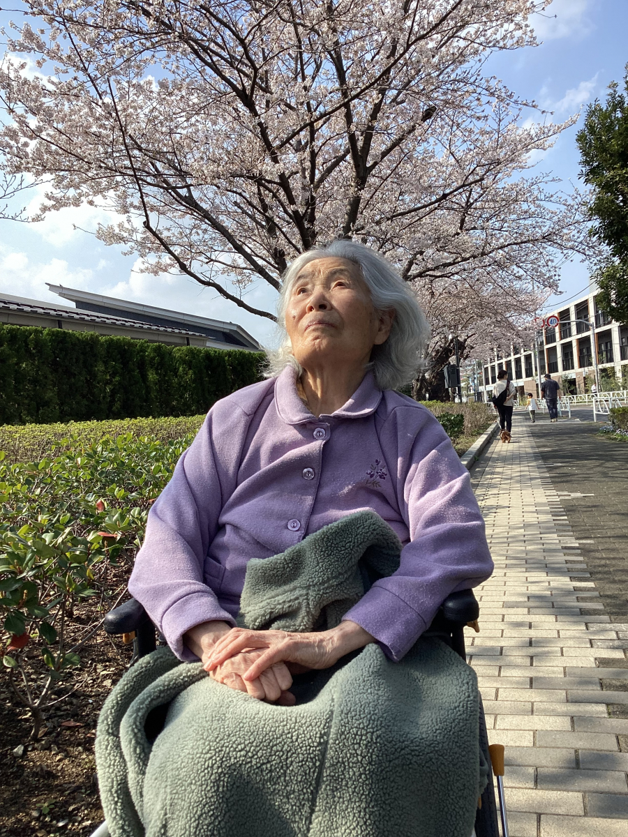 施設の前の桜が見頃になったので、天気の良い日に近くまで見にいきました。