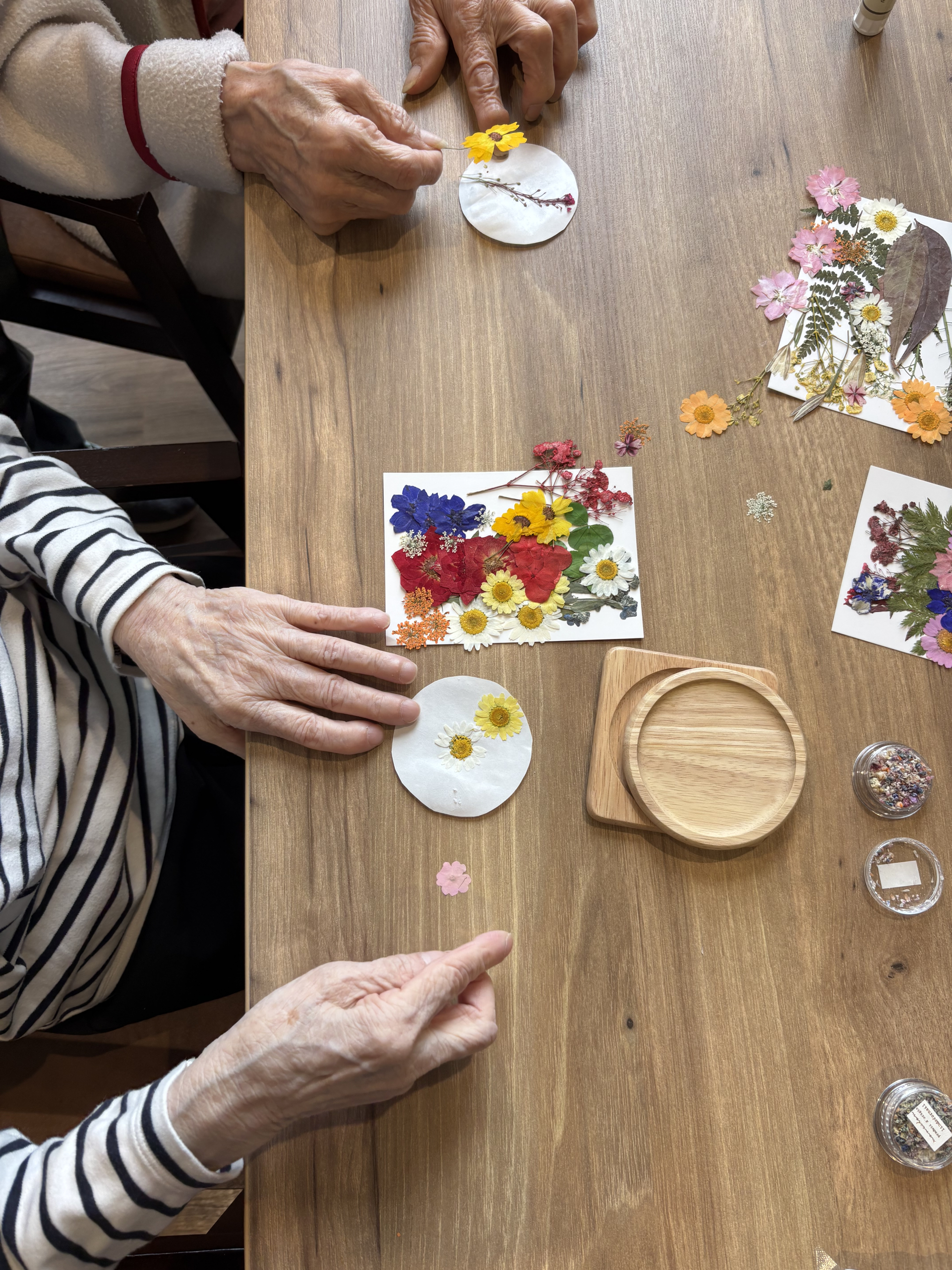 本日は、季節の花々を使って、世界にひとつだけの「押し花コースター」を作りました❀