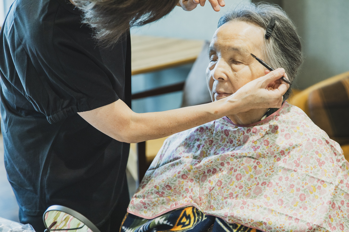普段は少し落ち着かない様子の利用者の方が、気持ちよさそうに目を閉じてメイクを受けている様子を見て、胸がいっぱいになりました。メイクは、ただ外見を整えるだけではなく、心にも大きな潤いをもたらしてくれるものなのだと感じさせられました(*'ω'*)