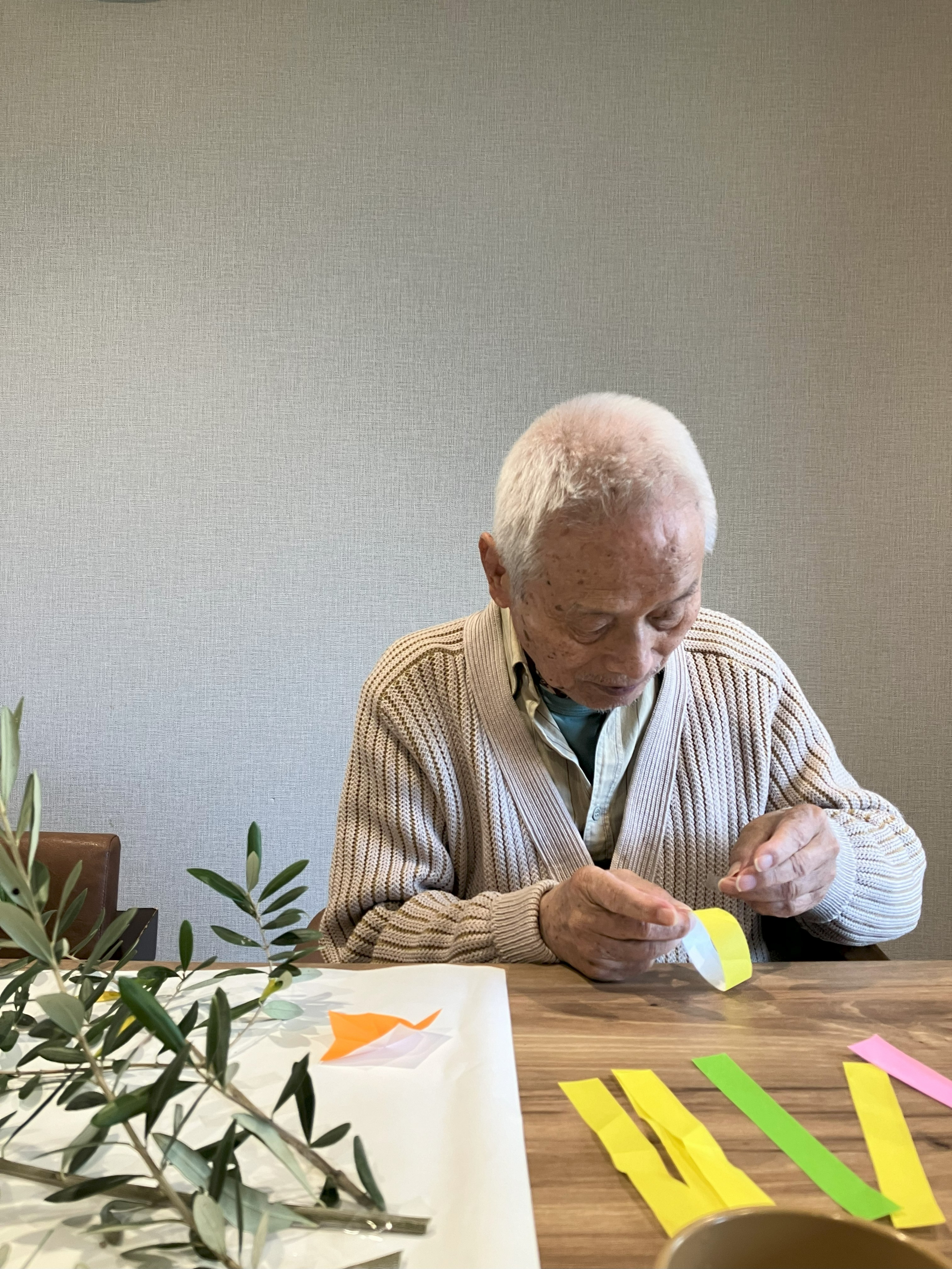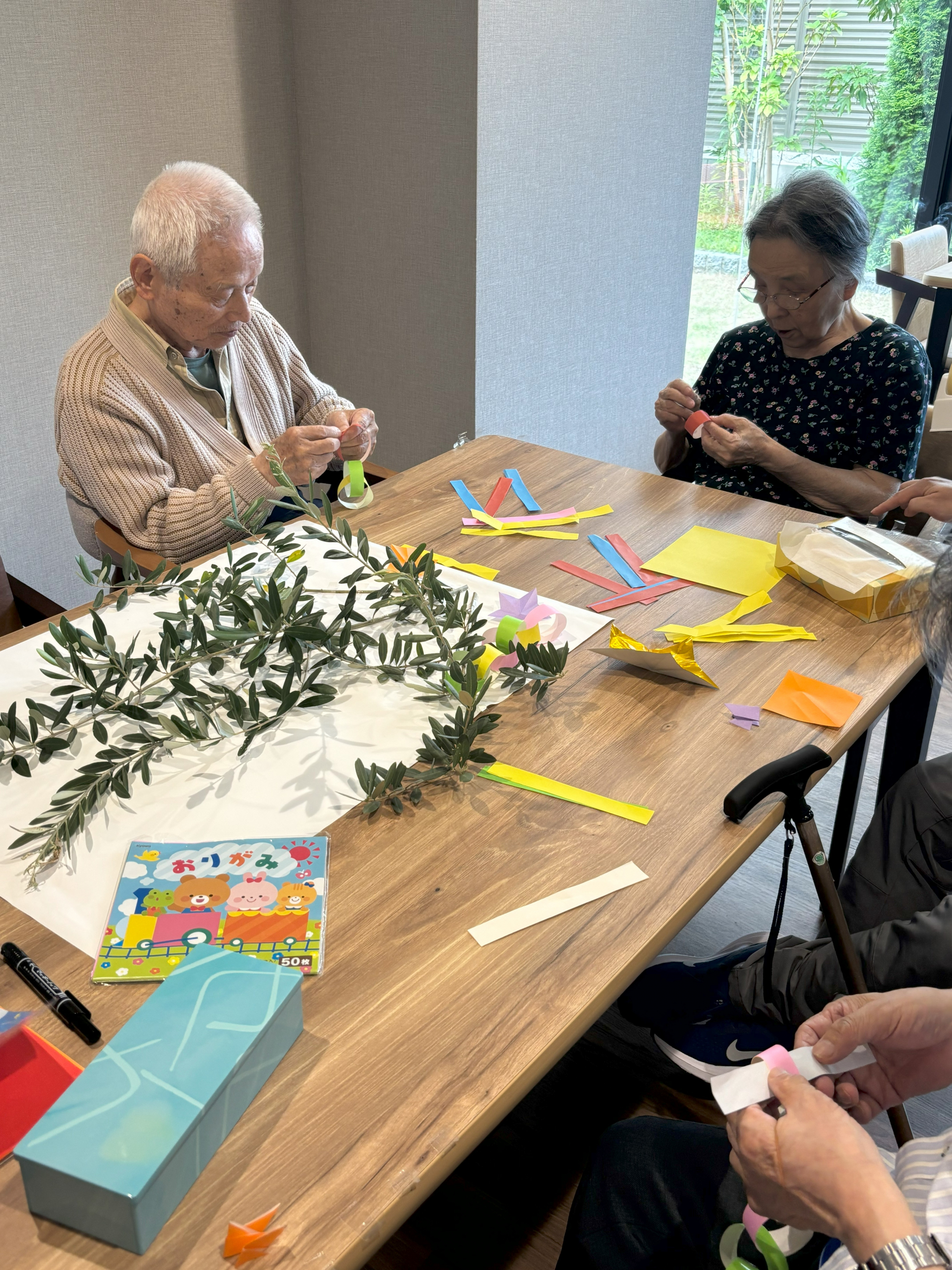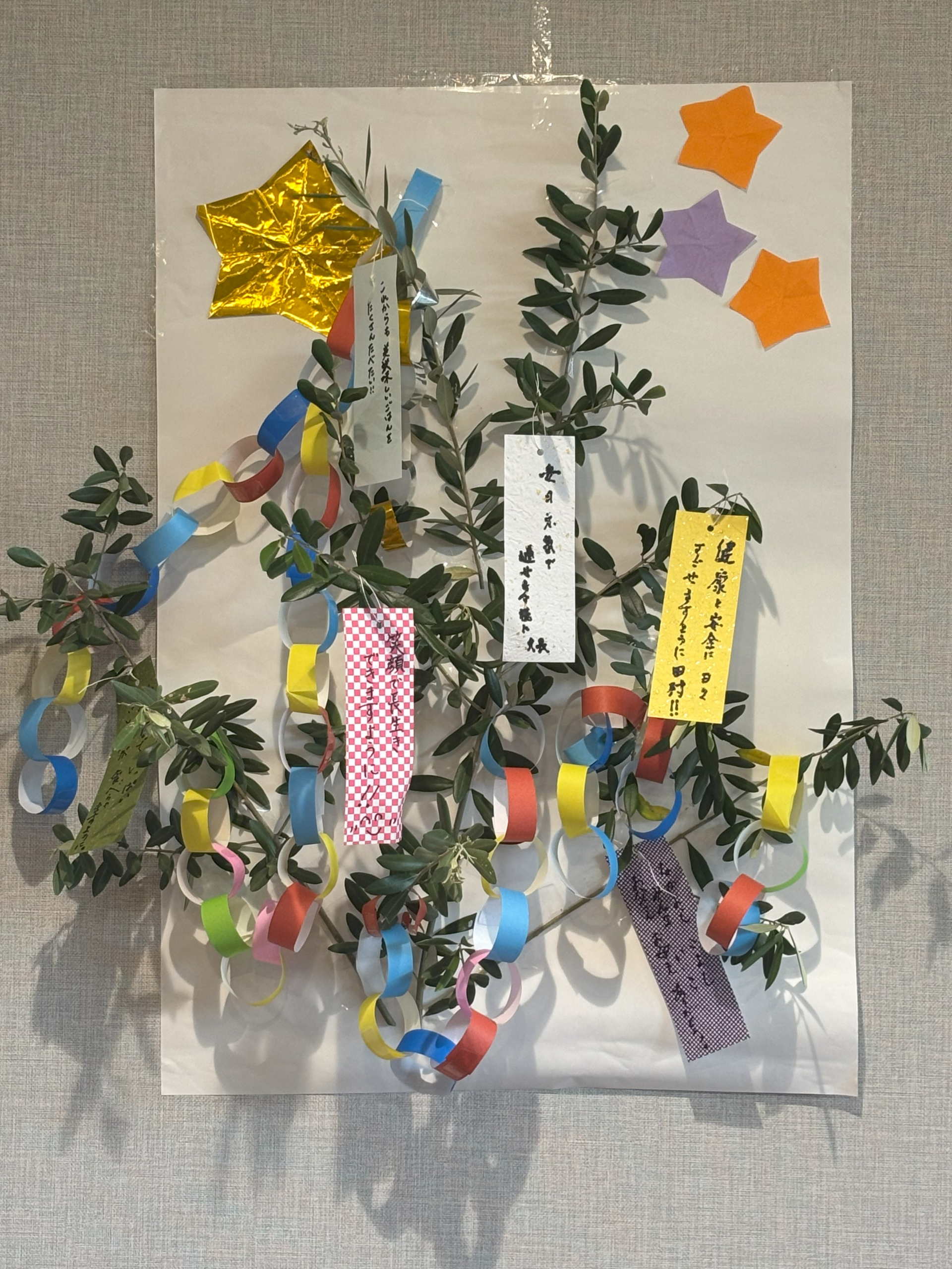 枝に、願い事を書いた短冊や、折り紙で作った輪っかの飾りをひとつひとつ繋いで、心を込めて飾り付け。